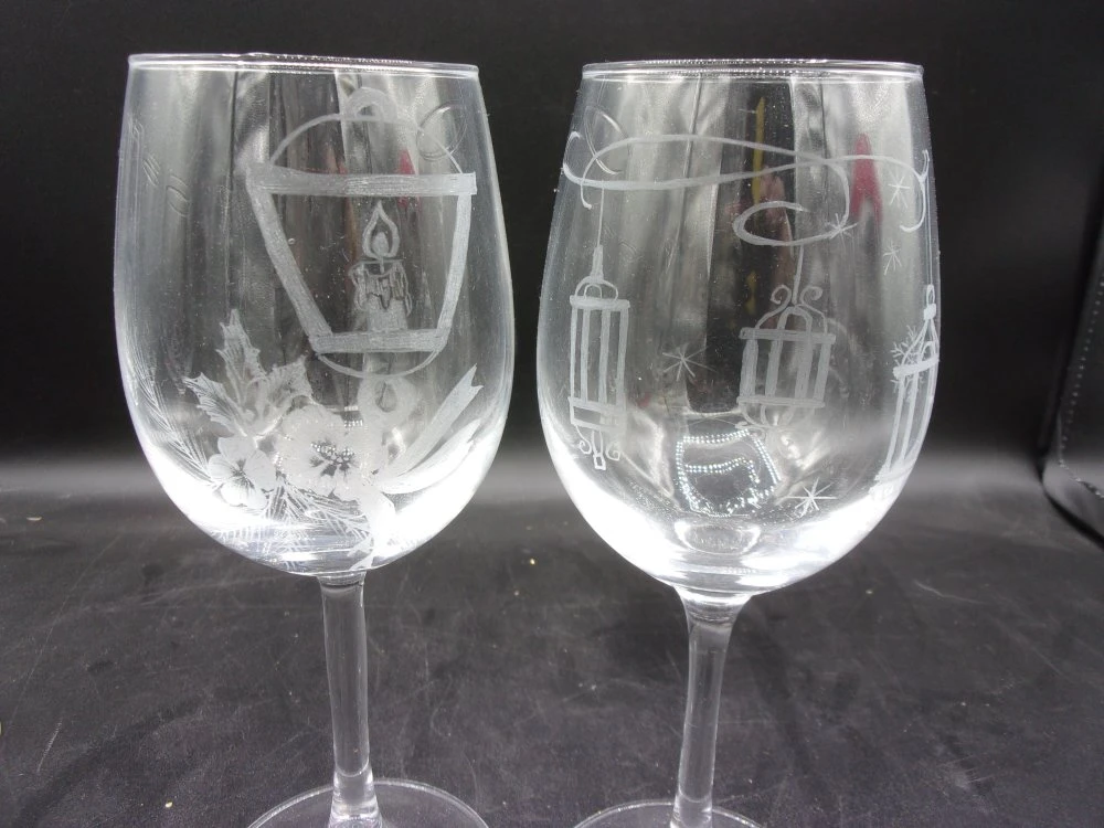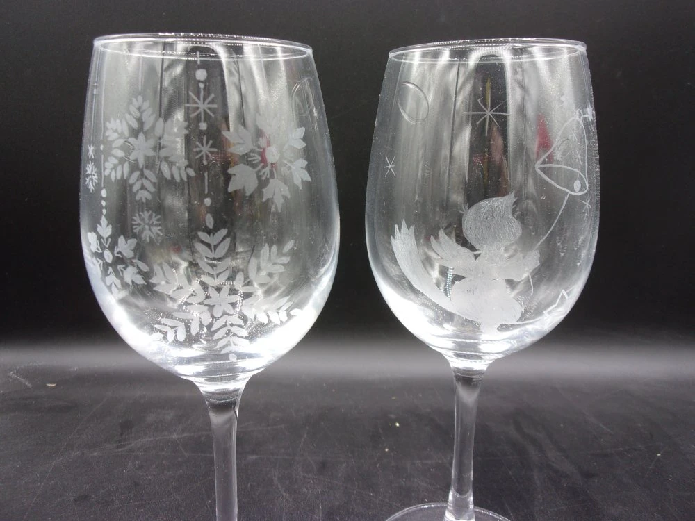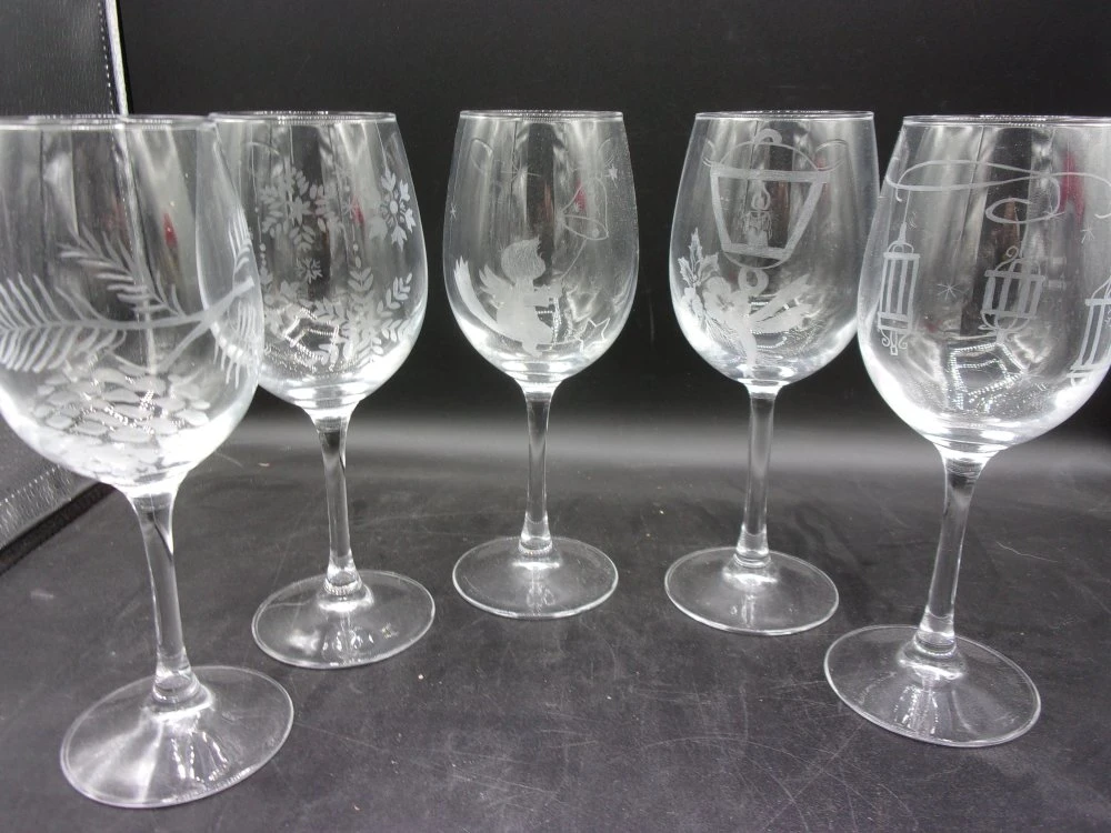 5 verres à vin gravés motif de Noël, personnalisables… ces verres sont entièrement gravés à la main avec une mine en diamant… ils ont tous un motif de Noël et ils seront remarqués sur votre table… ils sont personnalisables avec prénom ou initiales sur demande… personnalisation gratuite… modèle unique