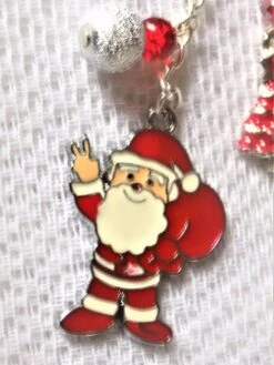 Noël:bijou De Sac Porte-clés Argent Et Rouge,perles Verre,breloques(père-noël,sapin,grelot,étoile).
