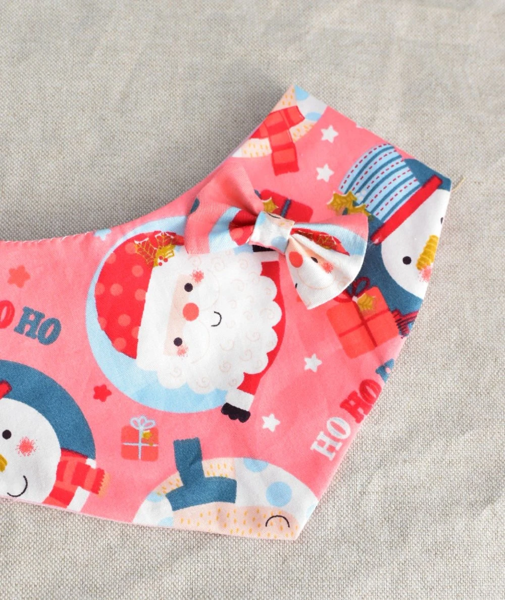 Bandana pour chien & chat Rose Motif Noël / Avec Ou Sans Noeud Assorti Pour Couette