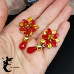 Boucles D’oreilles Clips Poinsettias Rouge Et Or – Un Bijou Artisanal Pour Noël