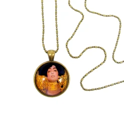 Collier, Long, Pendentif, Cabochon * Judith * Artiste Peintre, Klimt, Jaune, Art, Idée Cadeau, Noël