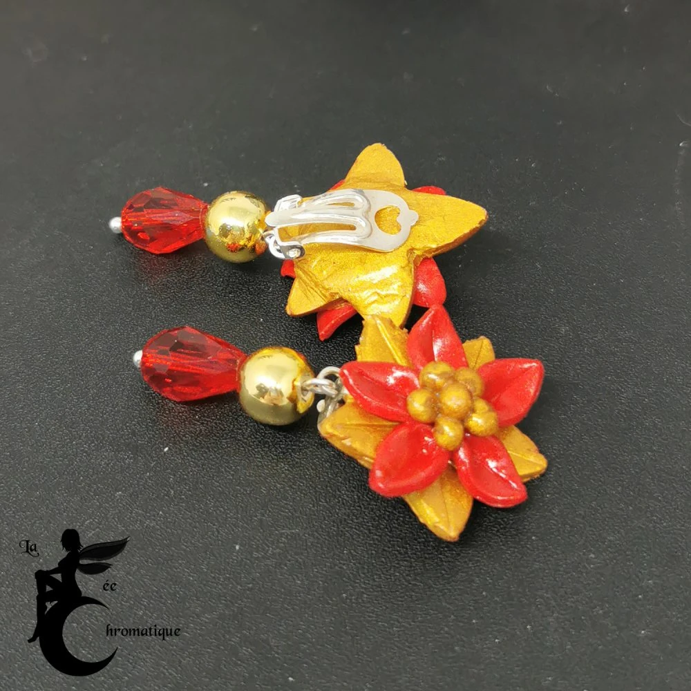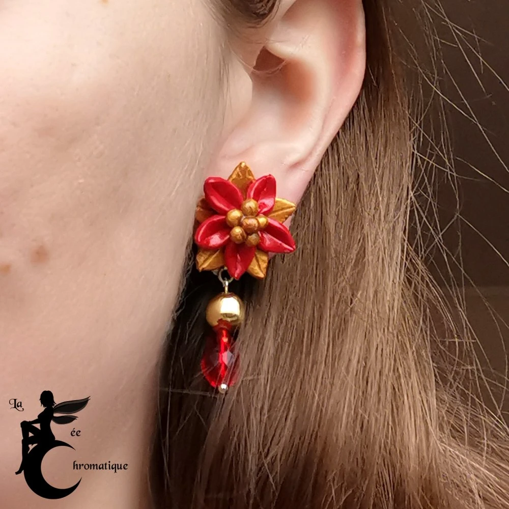 A la recherche de quoi porter avec votre tenue de fête, je vous propose cette paires de boucles d’oreilles poinsettias rouge et or (autres couleurs possible sur commande)