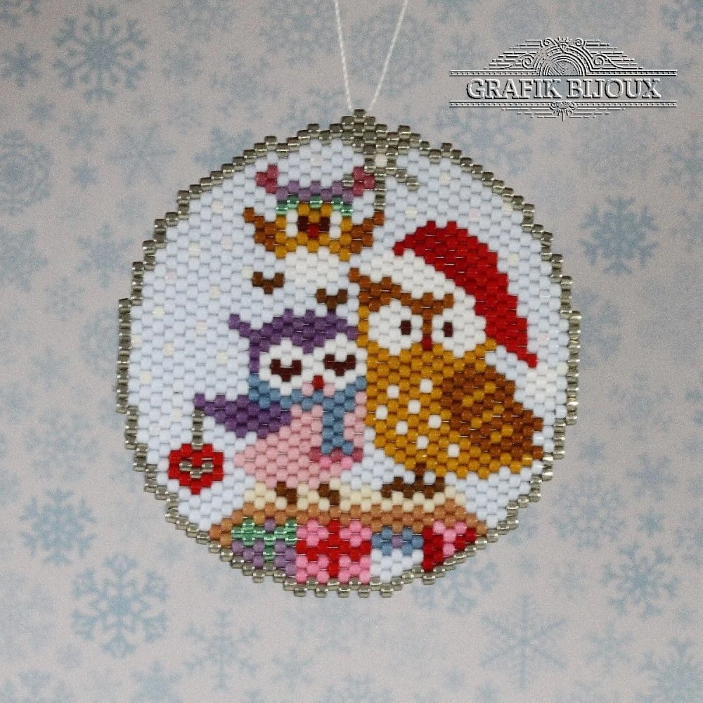 Boule de Noël à suspendre en miyuki motifs chouettes, hiboux