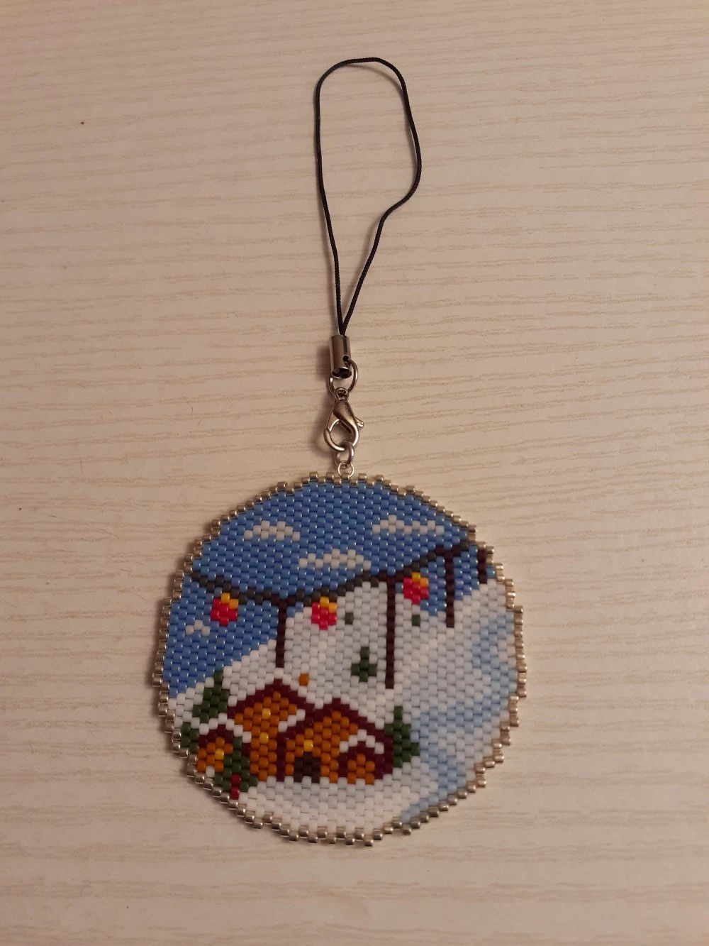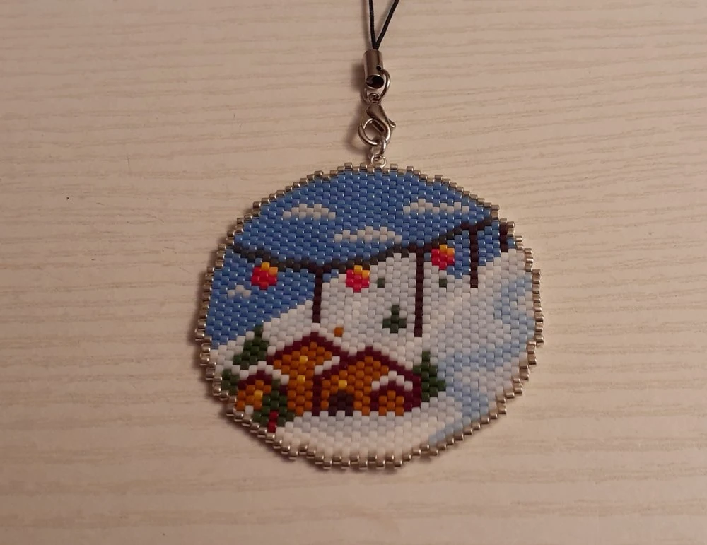 Boule de Noël tissée à la main à l’aide de perles Miyuki.
