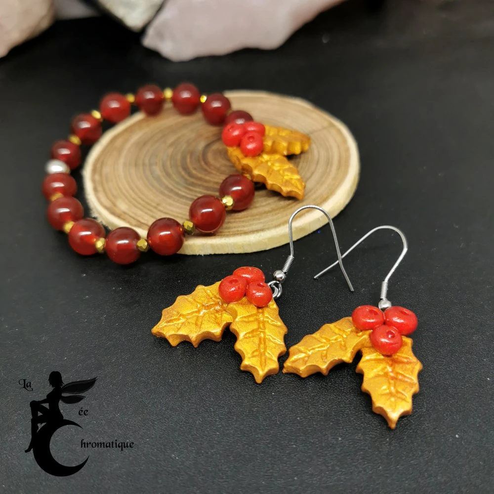 Boucle d’oreilles assorties disponibles : https://www.ungrandmarche.fr/boutiques/p/boucles-d-oreilles/boucle-d-oreilles-houx-or-et-rouge-bijou-de-noel-artisana/3973272