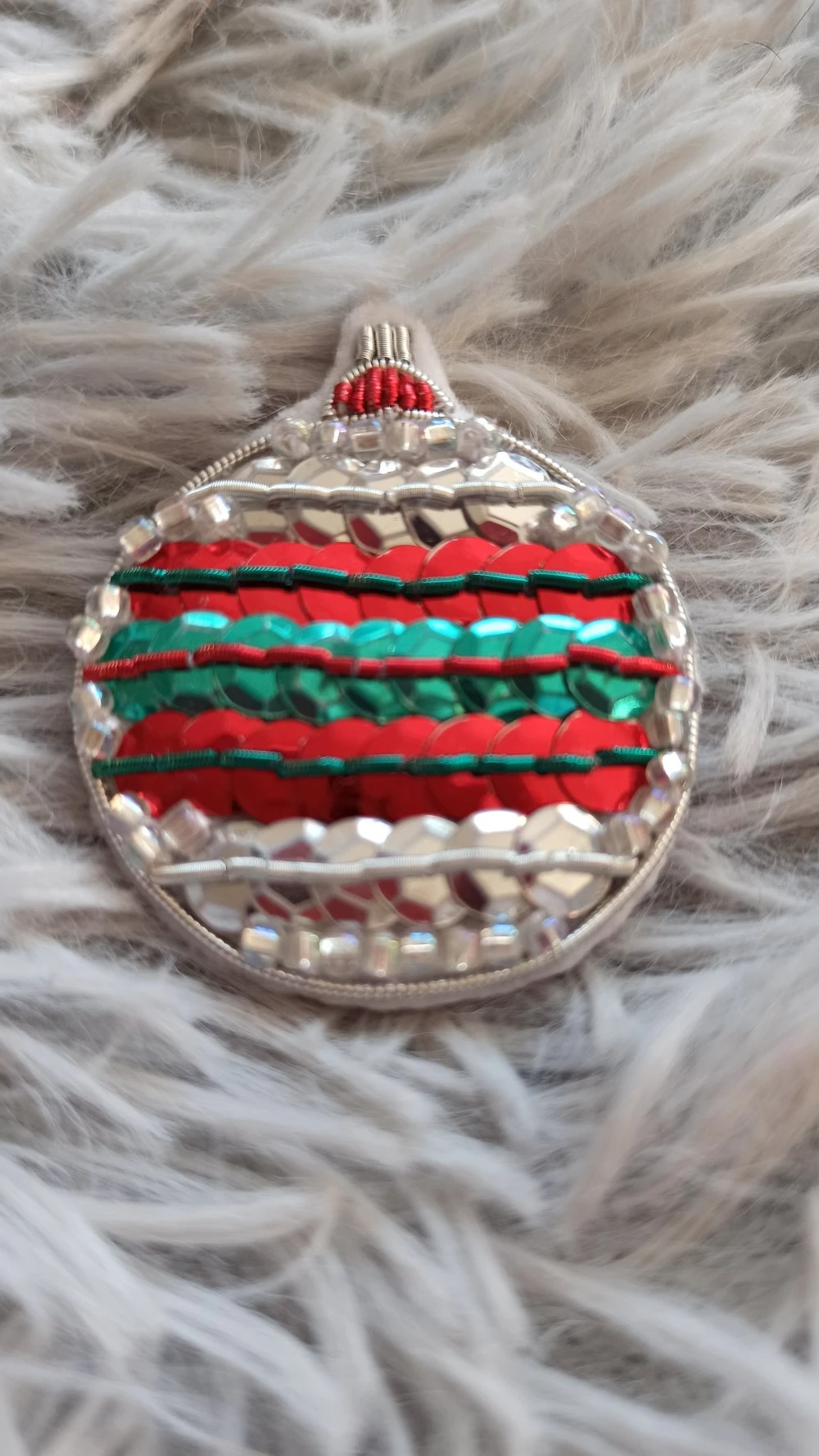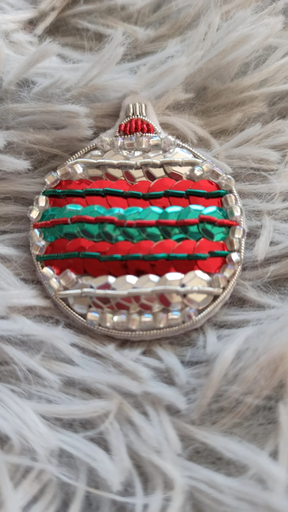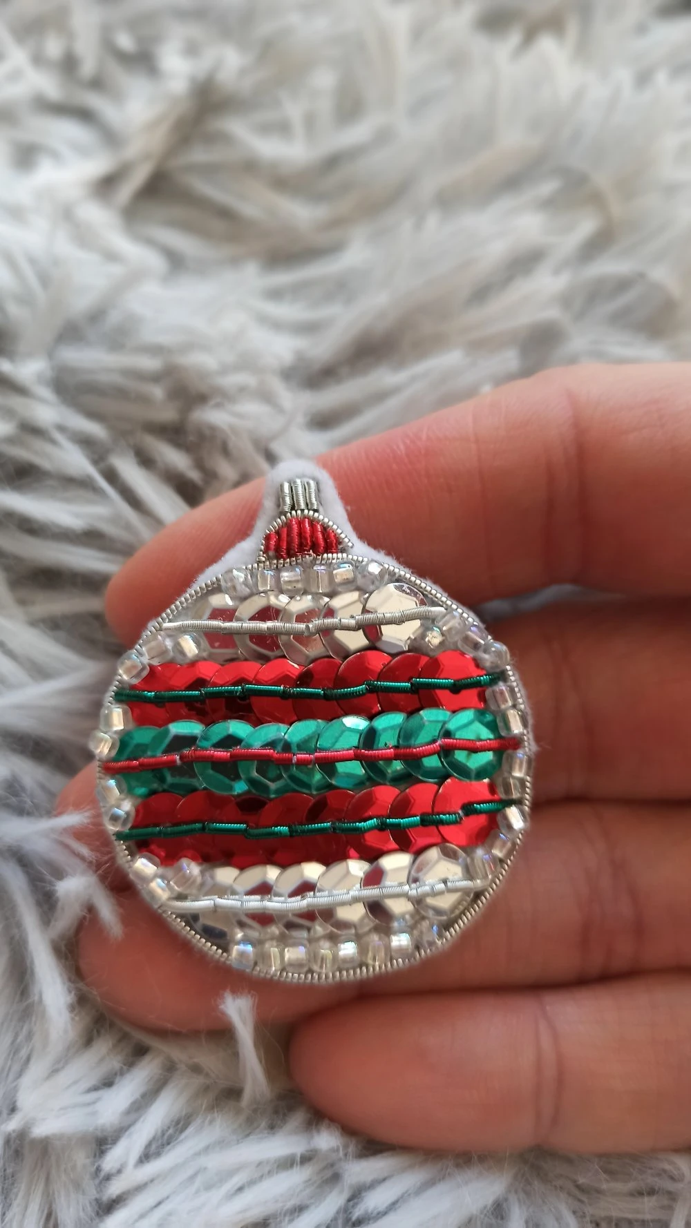 Broche réalisée en broderie or à la main. Cette boule de noël vous portera chance et complètera votre tenue de fêtes en y ajoutant une touche d’originalité.