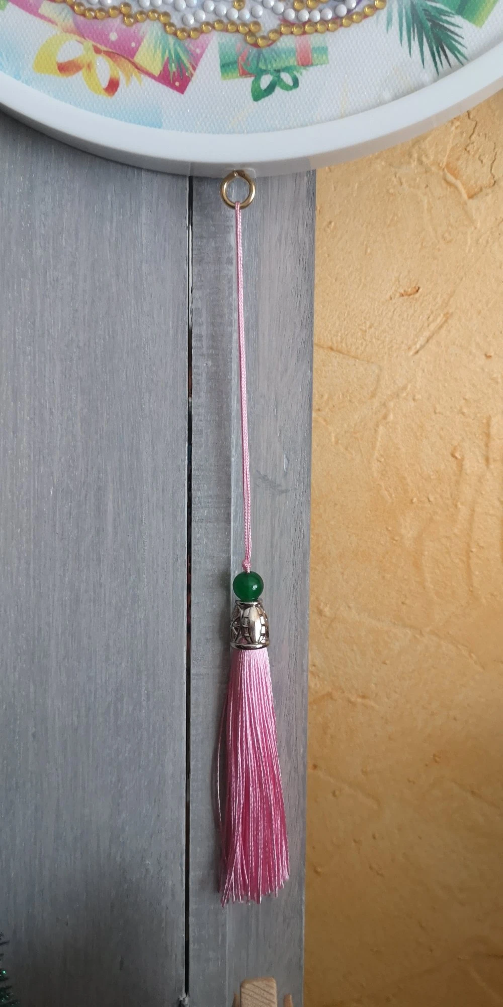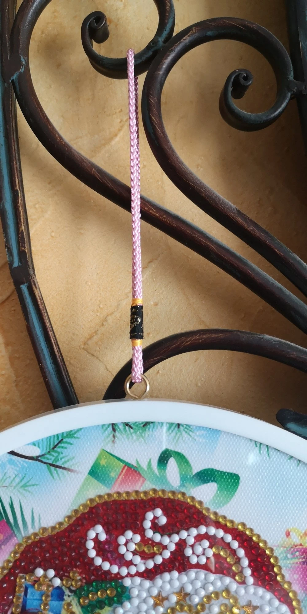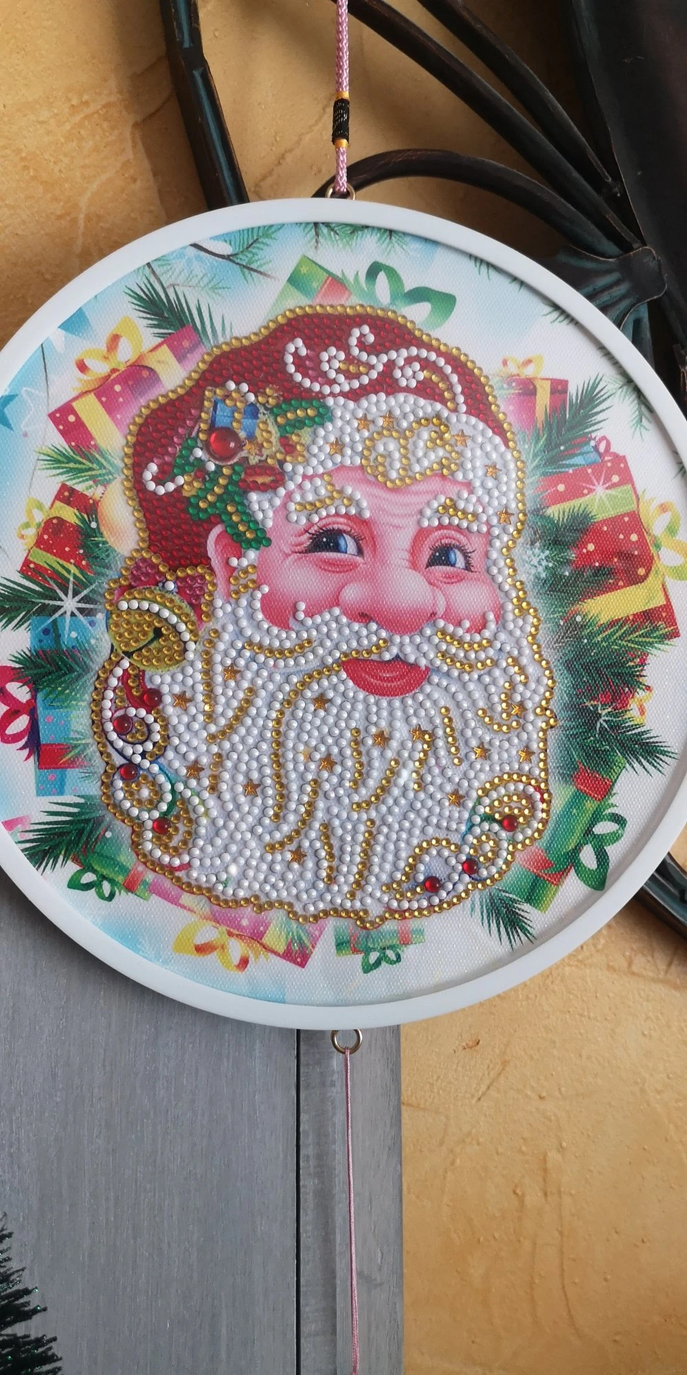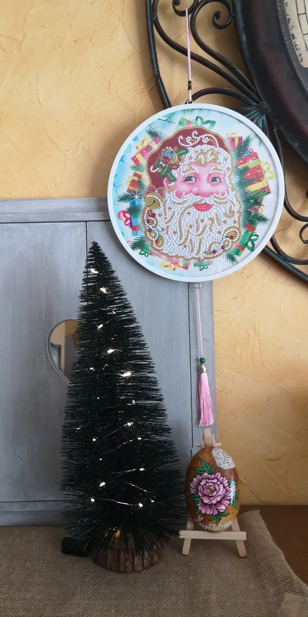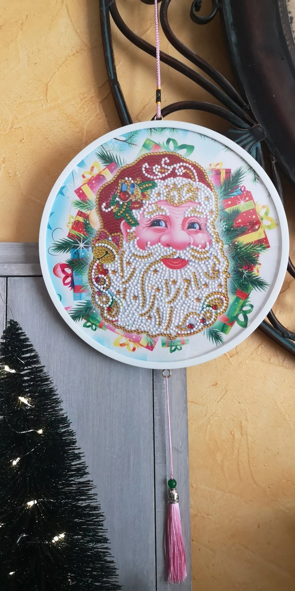 Très joli tableau rond à pampilles, aux motifs « Père Noël » réalisé en perles de diamants.