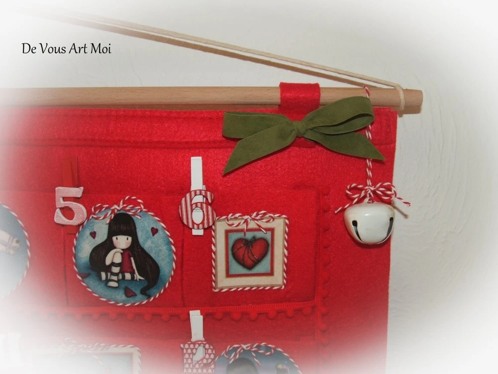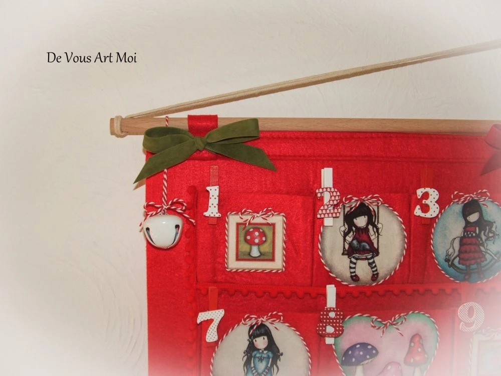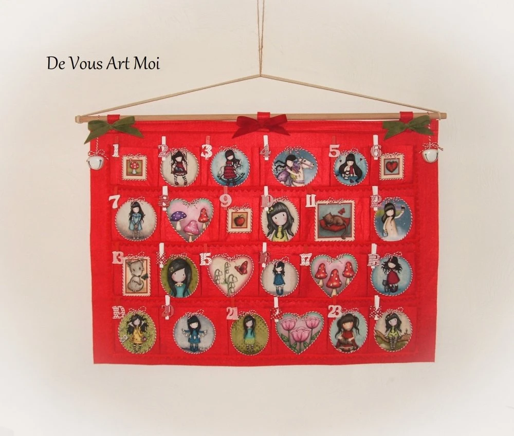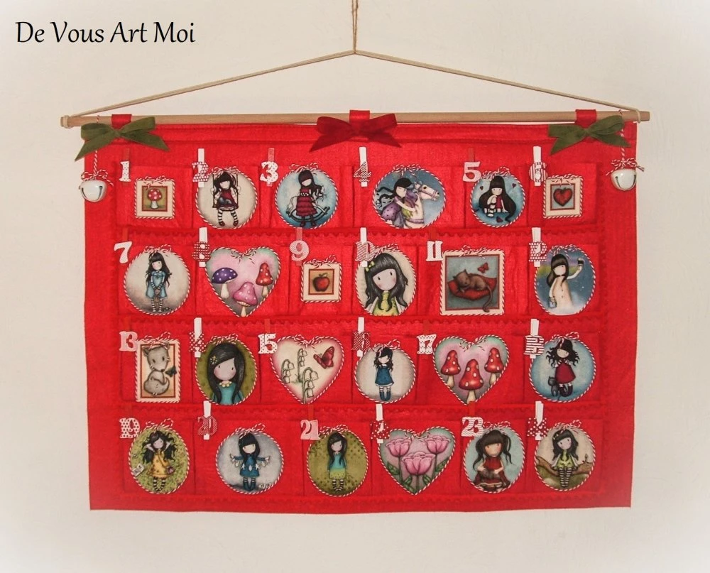 Calendrier Avent enfant panneau,fait main artisanal,calendrier avent feutrine fille,calendrier avent Gorjuss enfant