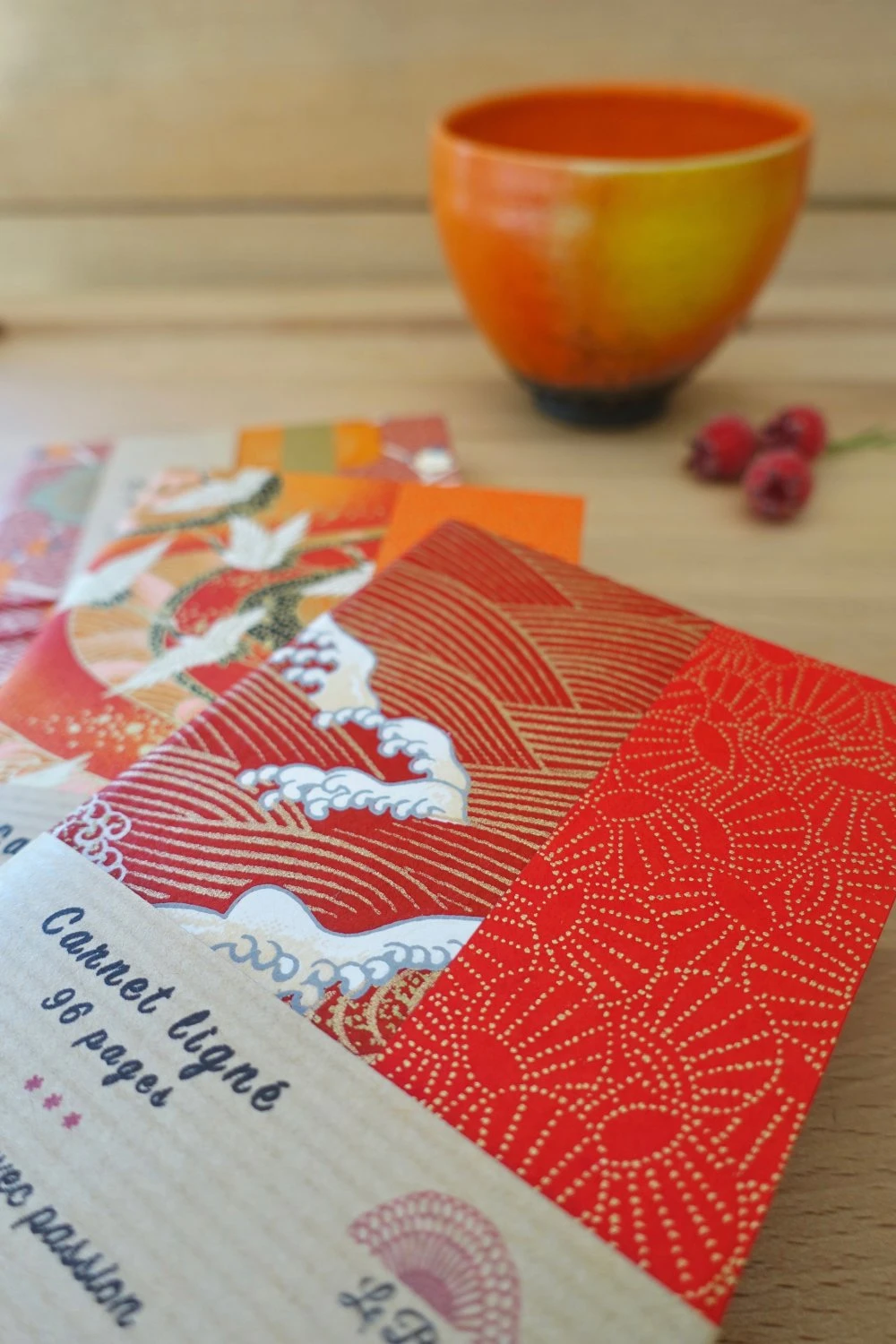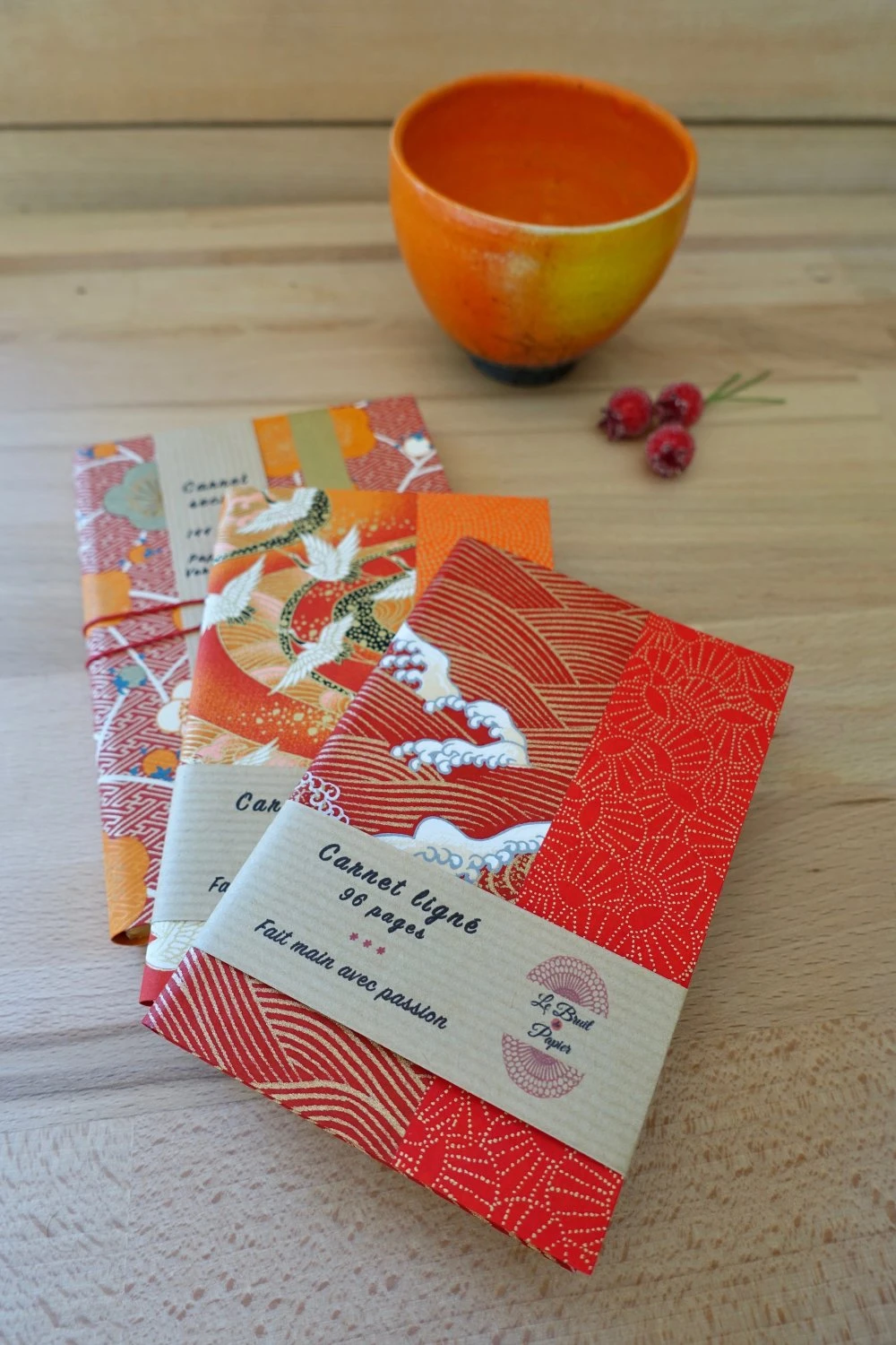 Ce petit carnet ou cahier souple en véritable papier japonais (washi), se glisse sans problème dans un sac et vous accompagne partout. Un écrin élégant, à l’esprit poétique, pour vos idées à noter.