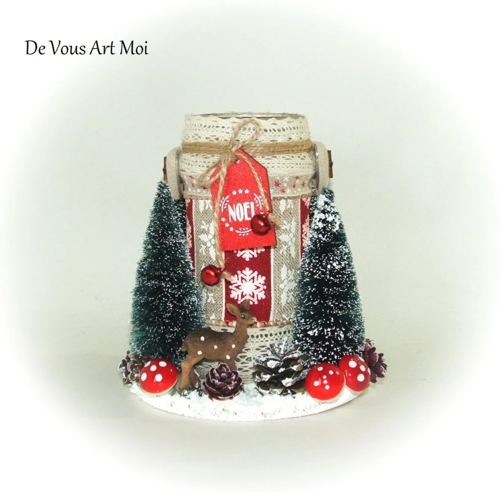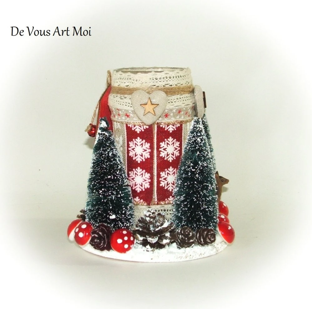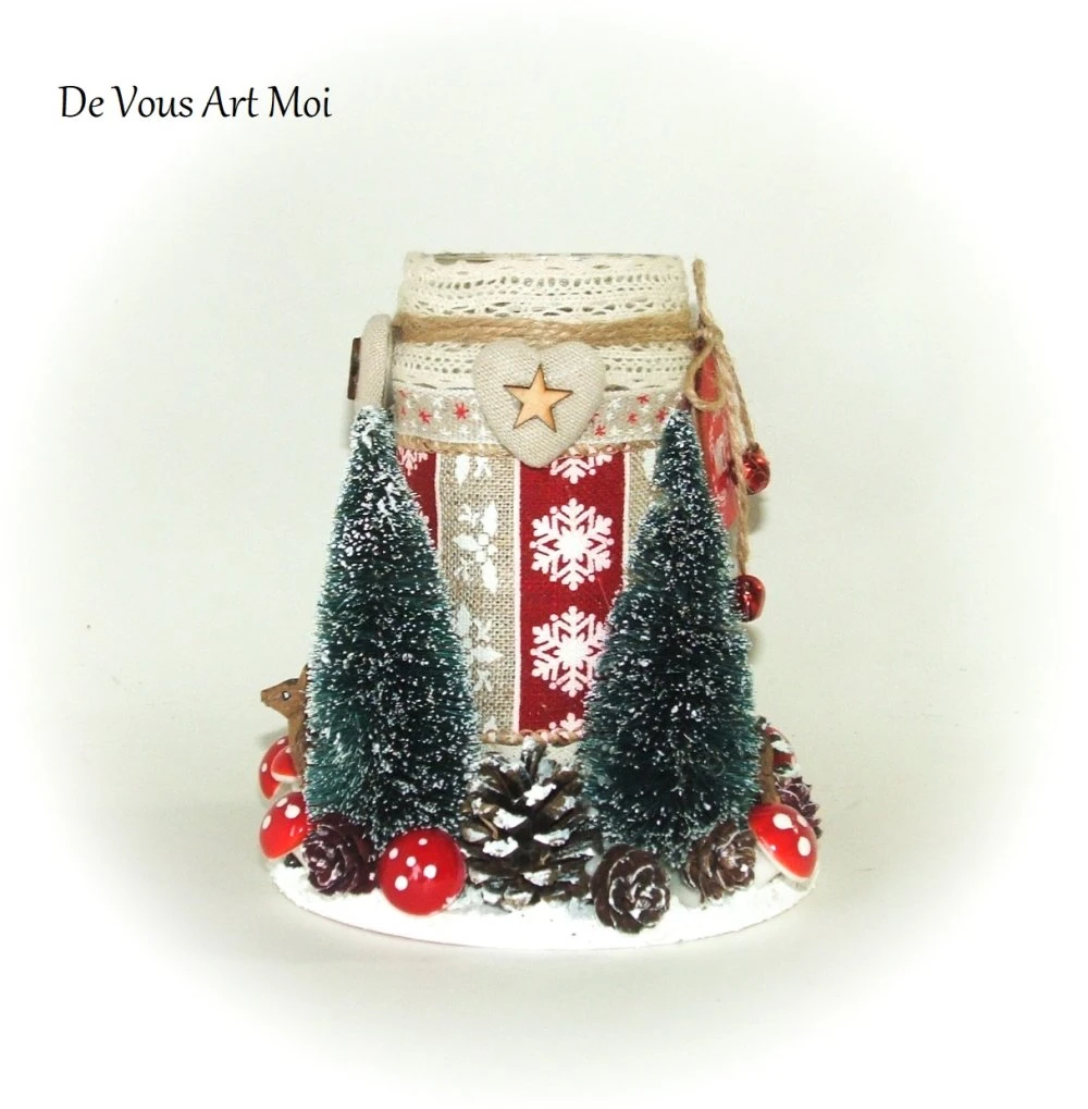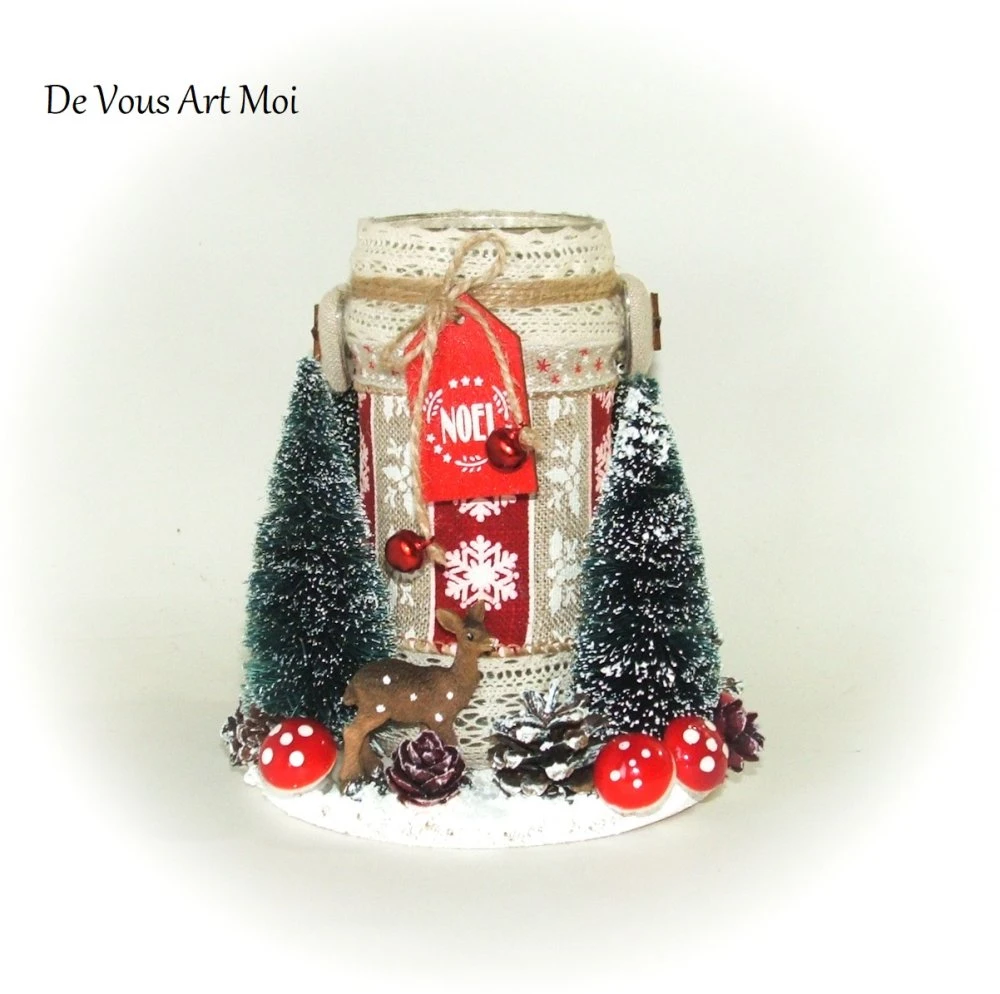 Lanterne bougeoir décoration Noël,fait main,noël décoration table lumineuse,photophore verre noël,fait main