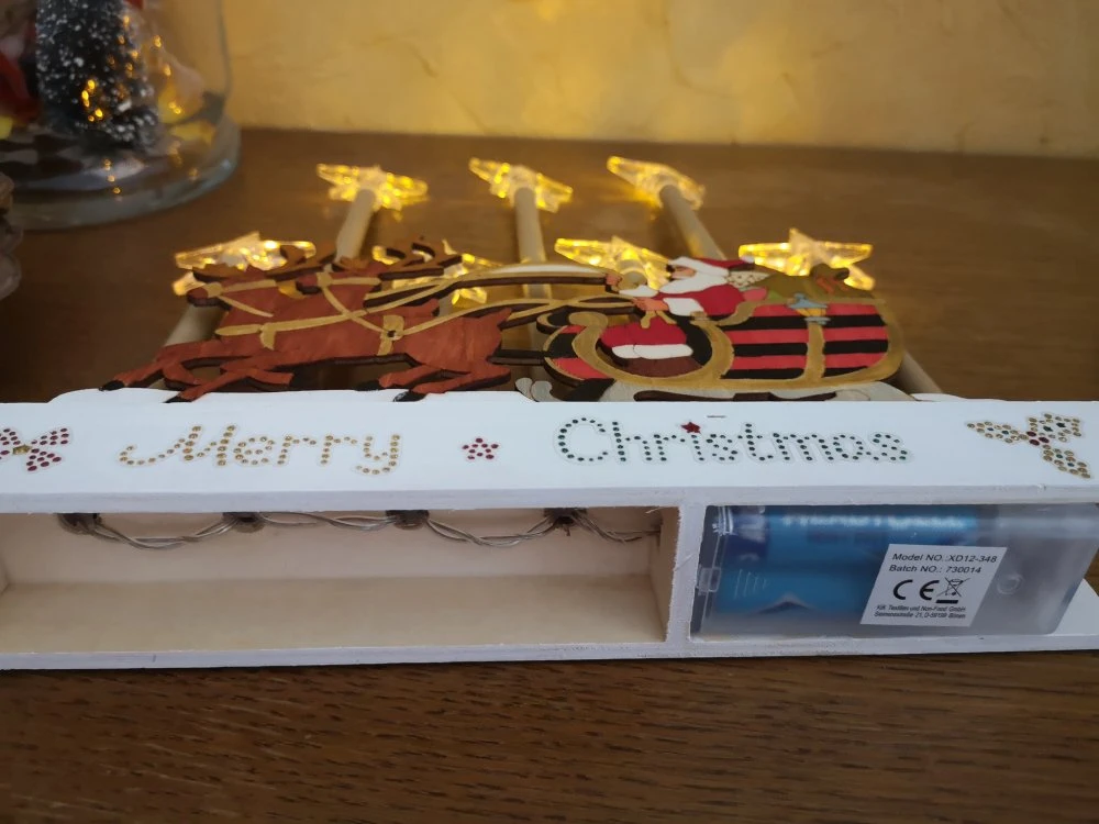 Fonctionne avec 2 piles (livrées avec votre création), un interrupteur on/off intégré.