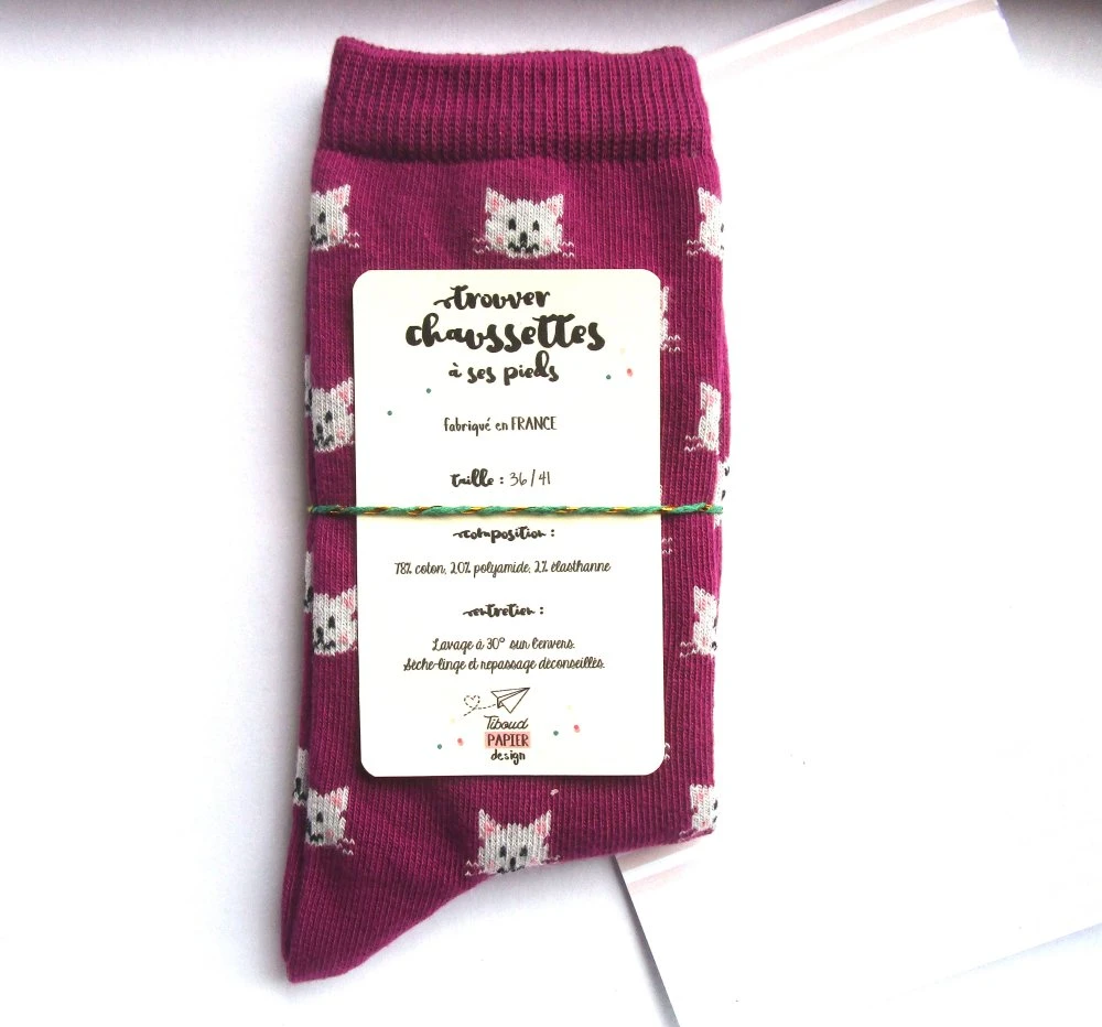 Taille : 36-41 pour adultes et adolescents. Ma marque ‘Tiboud’Papier’ est inscrit sur le dessous des chaussettes /plante de pieds.