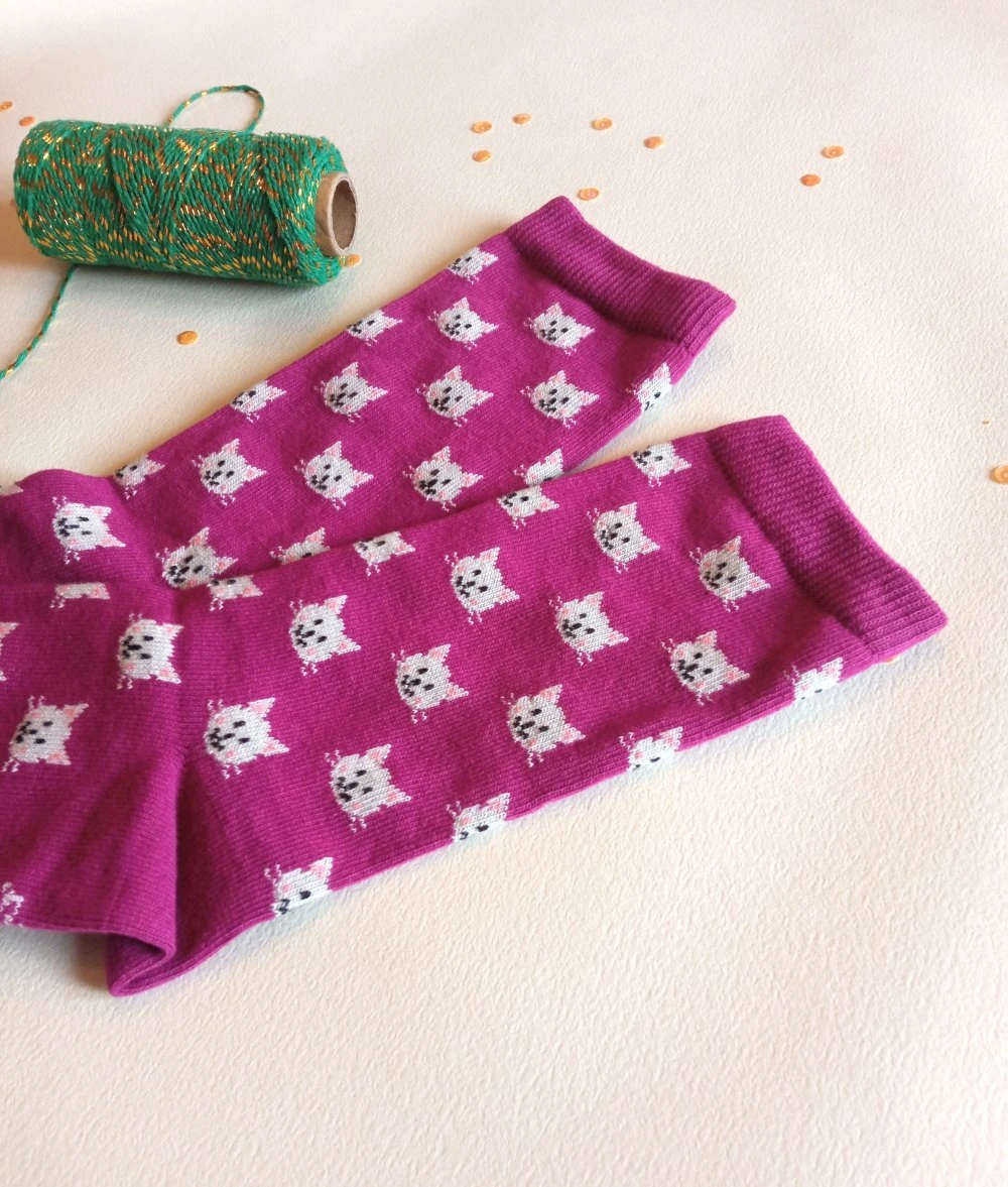Cette jolie paire de chaussettes ‘tête de chat’ est destinée aux amoureux des félins