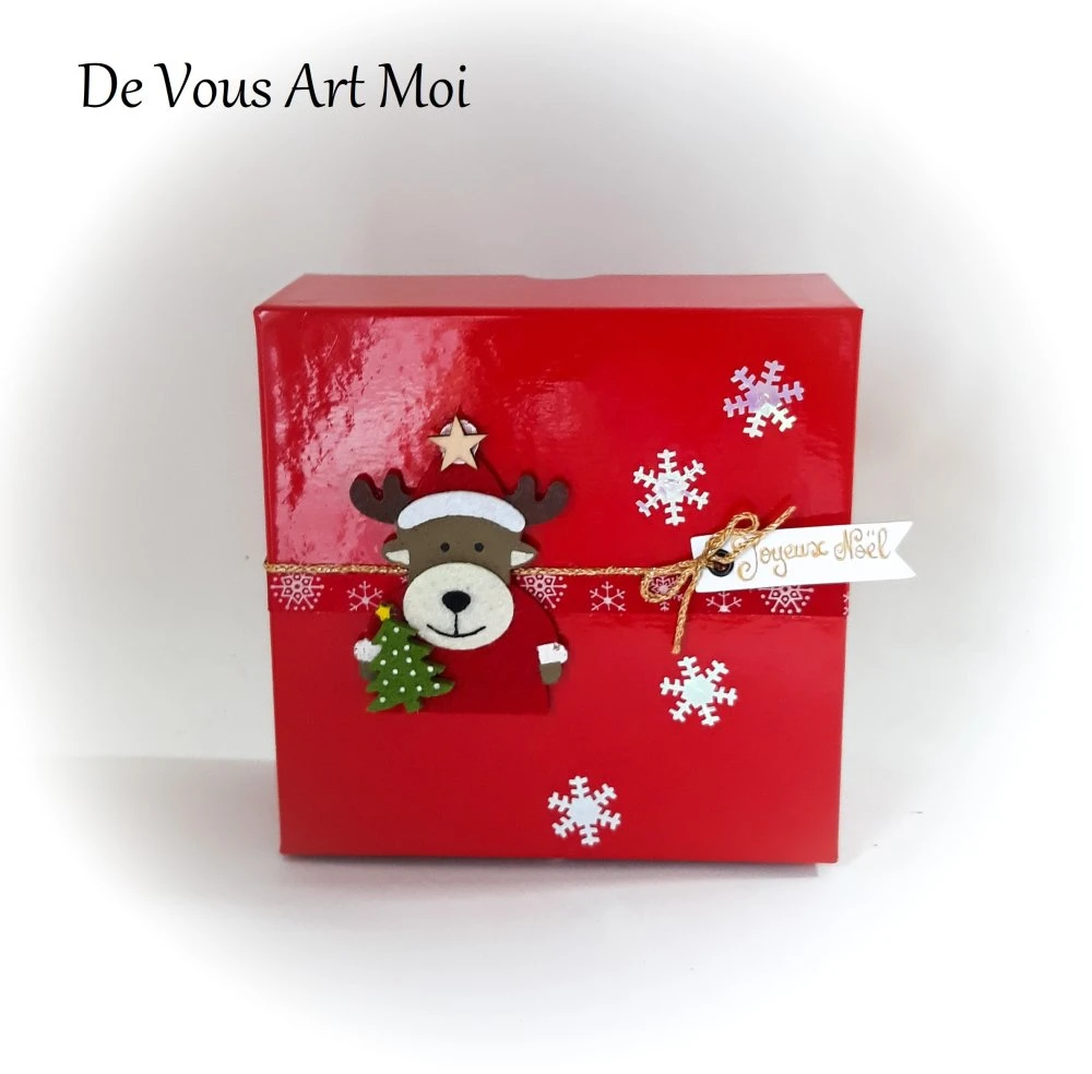 Boite Coffret noël carré sapin Noël fait main boite cadeau renne de Noël rouge coffret pour mes boules de noël,boite veille de Noël