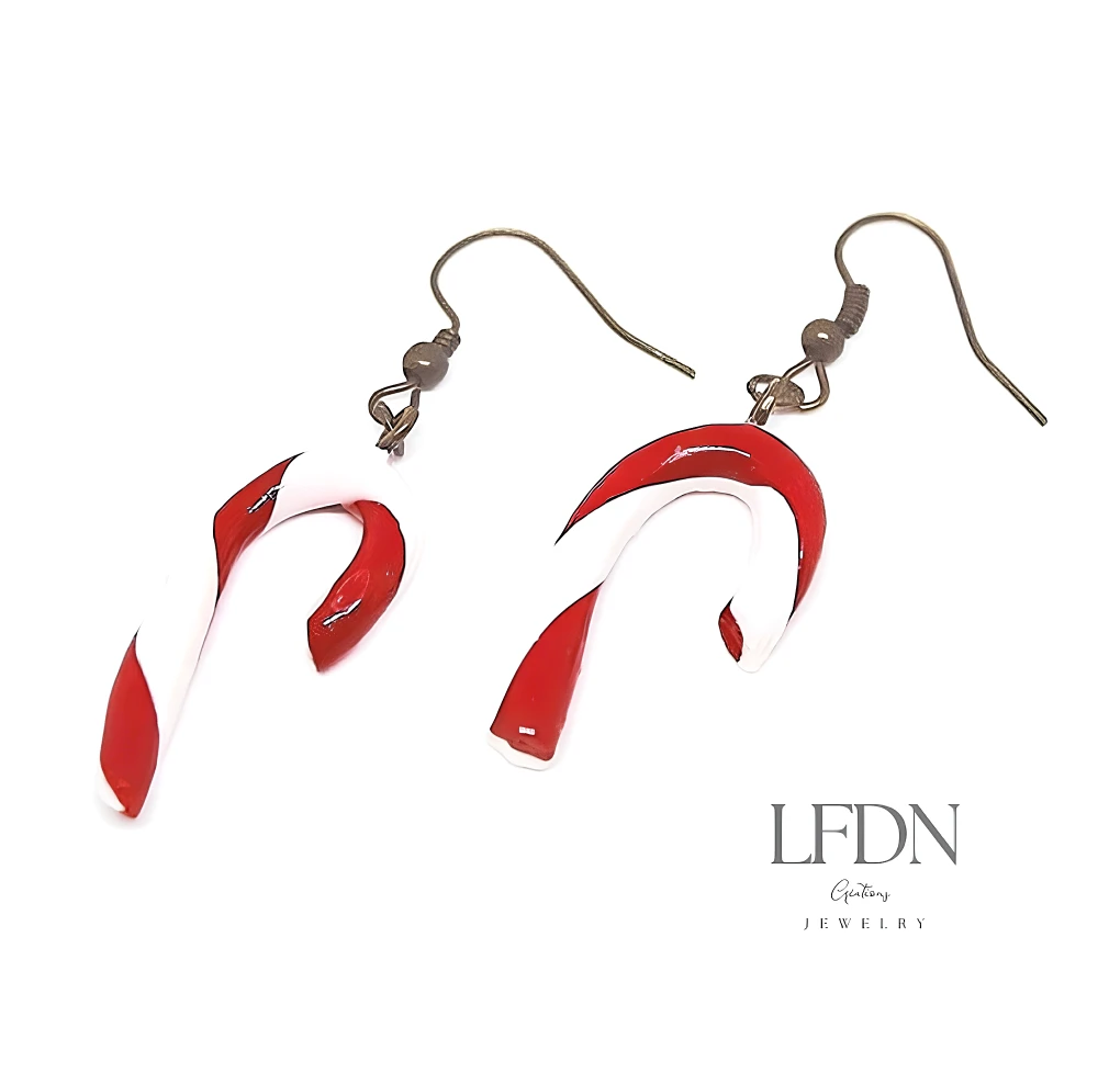 lesfimodelicesdenathy, collier biscuit de noël en fimo, boucles d’oreille sucres d’orge, bijoux gourmand, bijoux fantaisie noël