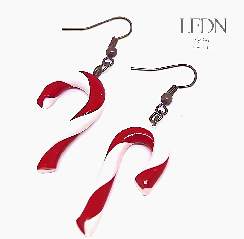 lesfimodelicesdenathy, collier macaron noël en fimo, flocon de neige fimo, boucles d’oreille sucre d’orge, bijoux gourmands, bijoux fantaisie