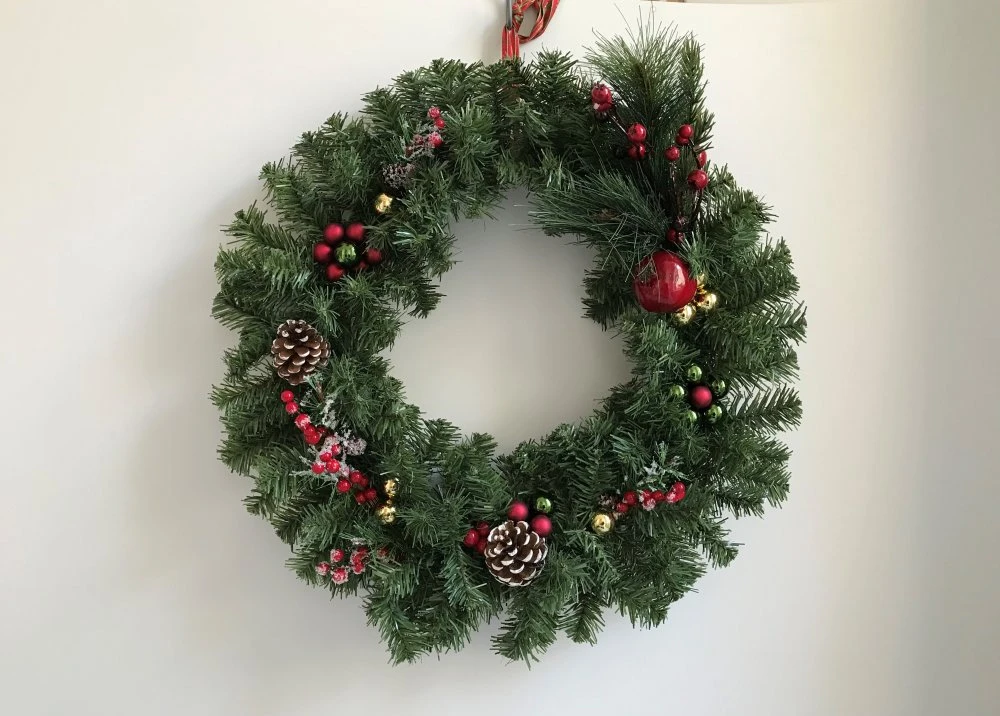 Cette couronne décorera joliment votre porte ou votre cheminée.