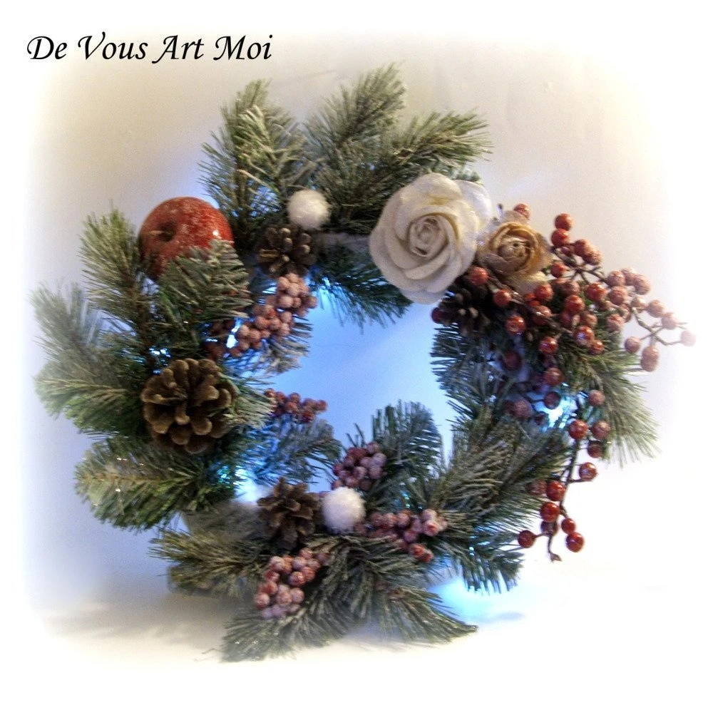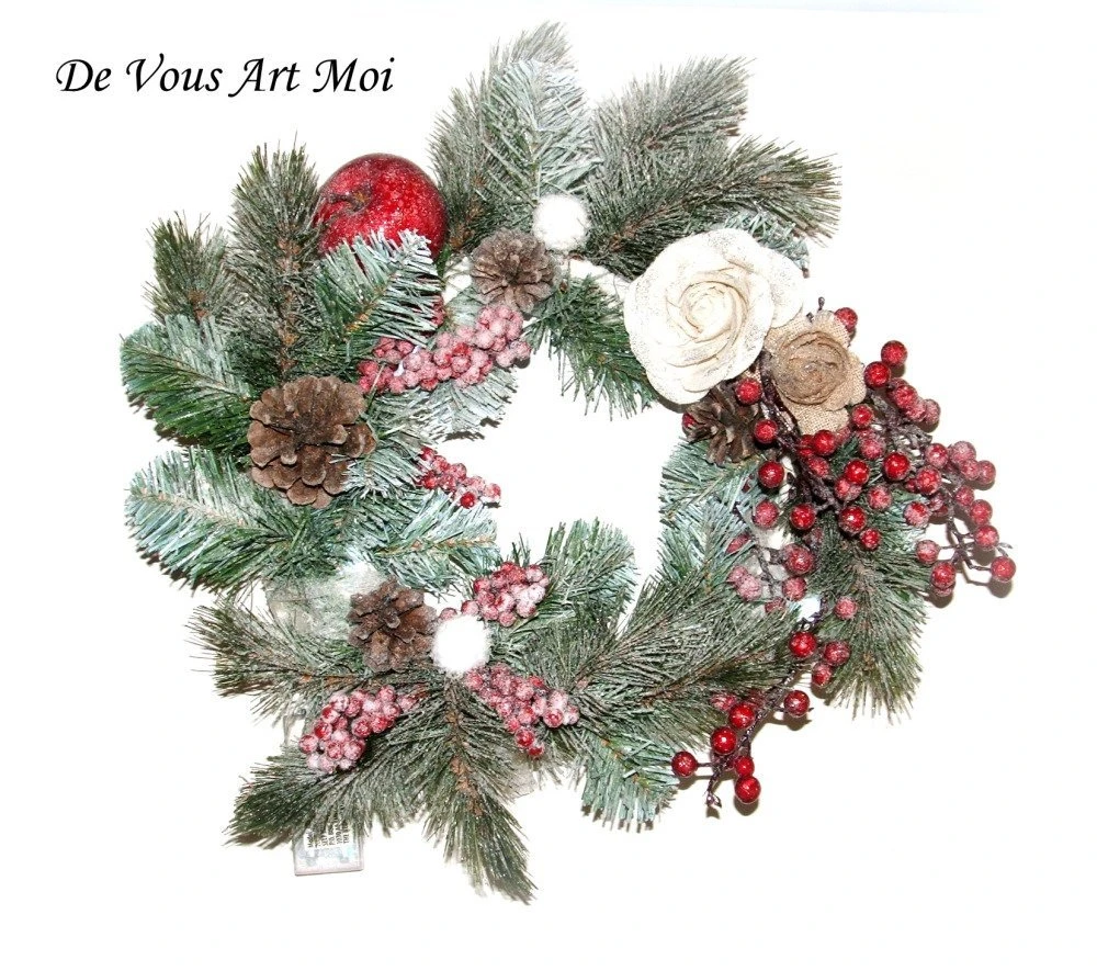 Une sublime couronne de Noël qui apportera chaleur et douceur à votre intérieur,et qui vous emportera avec féerie dans la magie de Noël!Vous pouvez également la déposer sur votre table de réception pour décorer votre table,en y plaçant éventuellement un photophore avec une bougie(voir photo)