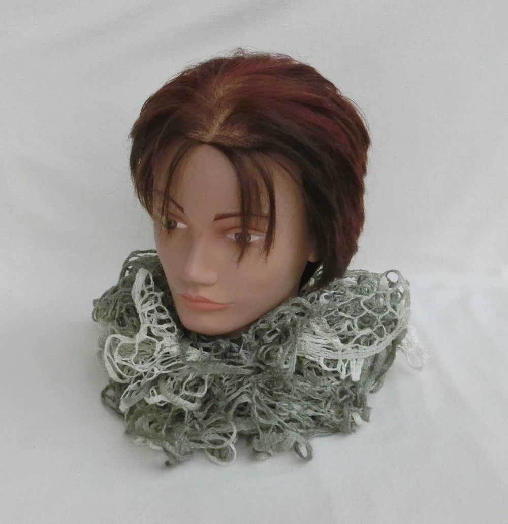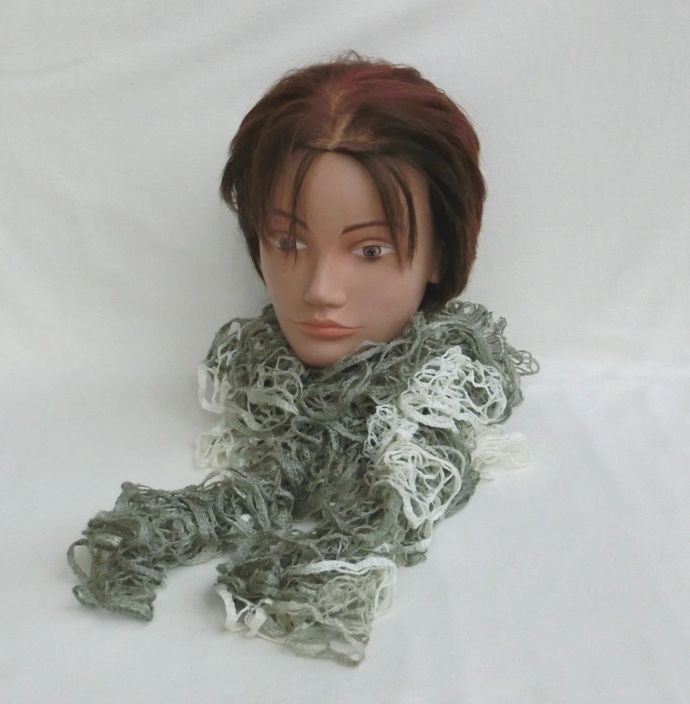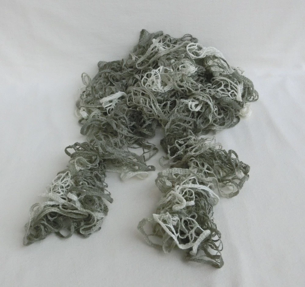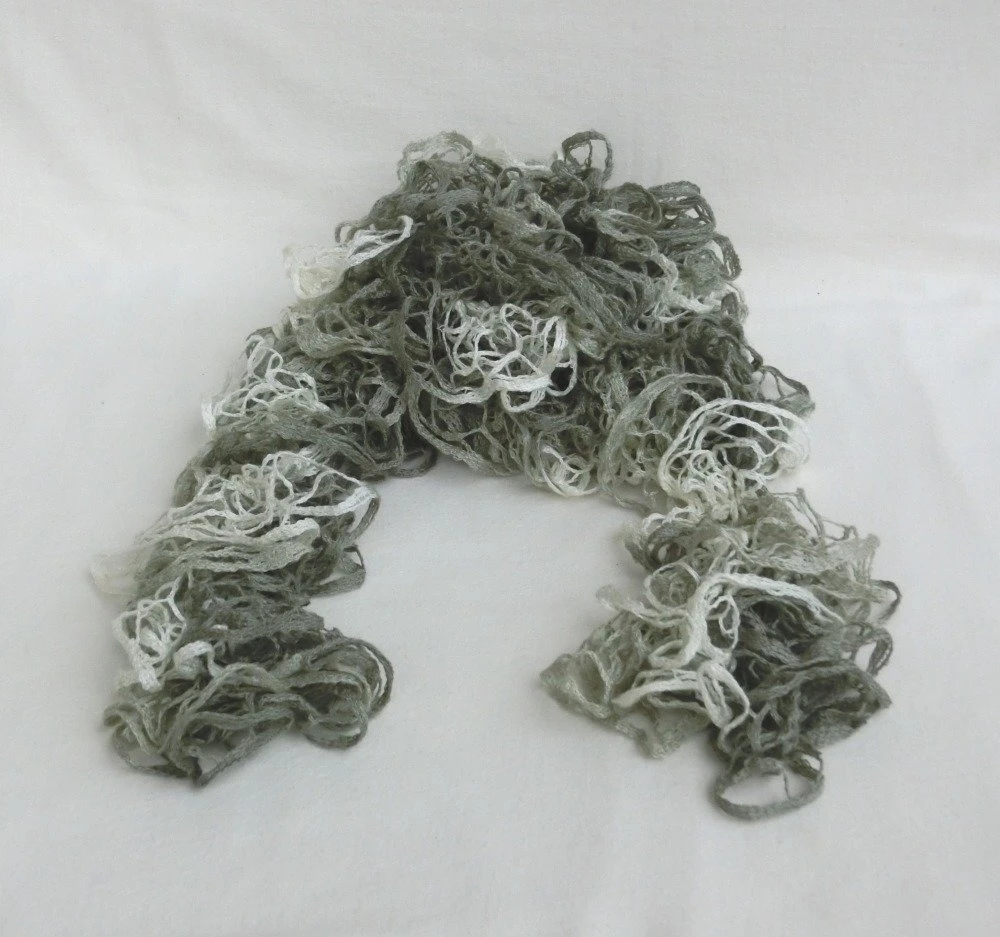Tricot formant un effet de volants et dentelle, à grandes mailles filet