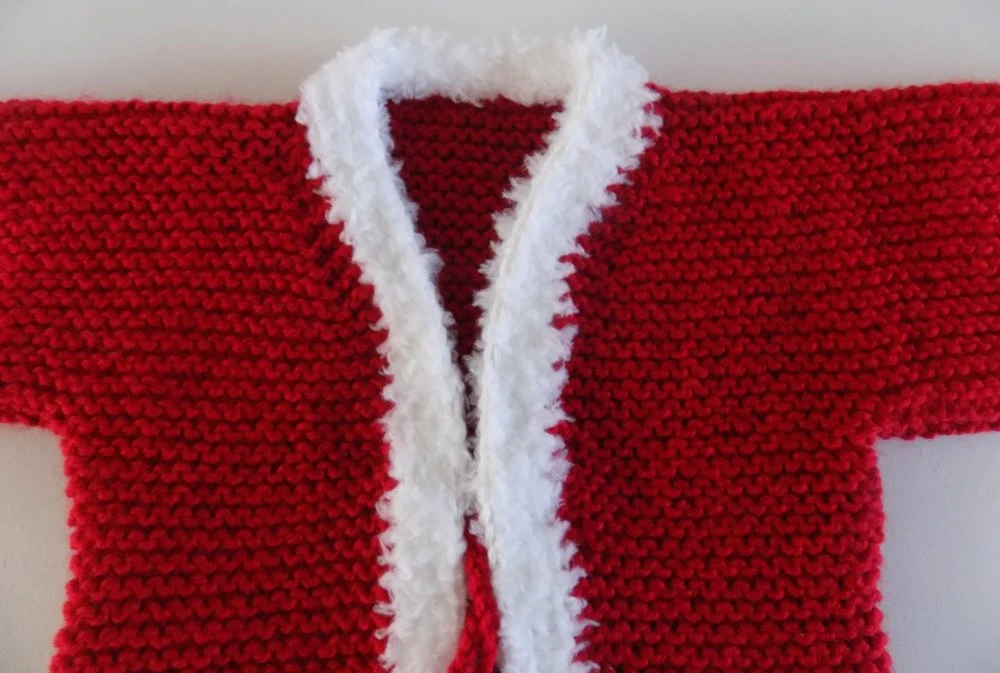 _Joli petit ensemble de Noël pour bébé réalisé à la main au tricot en fil épais acrylique de coloris rouge et fil 100% polyamide de coloris blanc en taille naissance à 3 mois , selon le poids et la taille de bébé , pensez à vérifier les mensurations de l’enfant avant de commander.