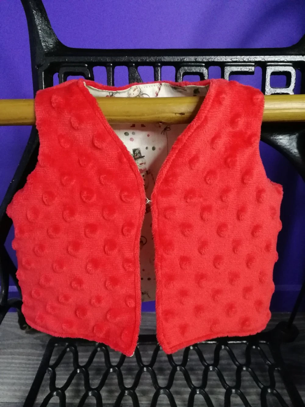 Adorables Gilets Berger en tissu coton bio Noël et tissu douceur fausse fourrure rouge vif