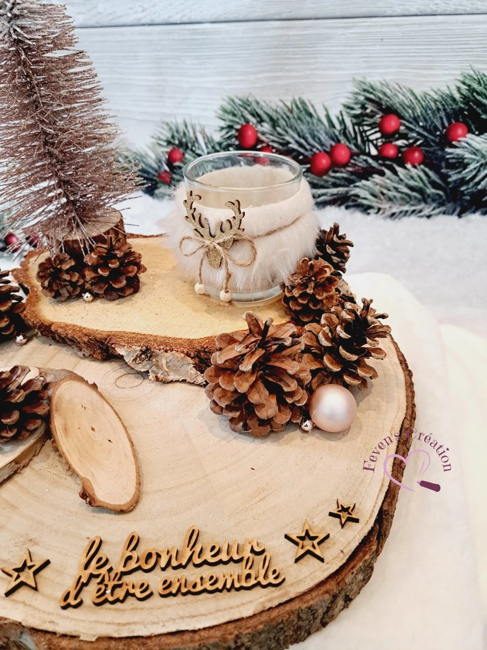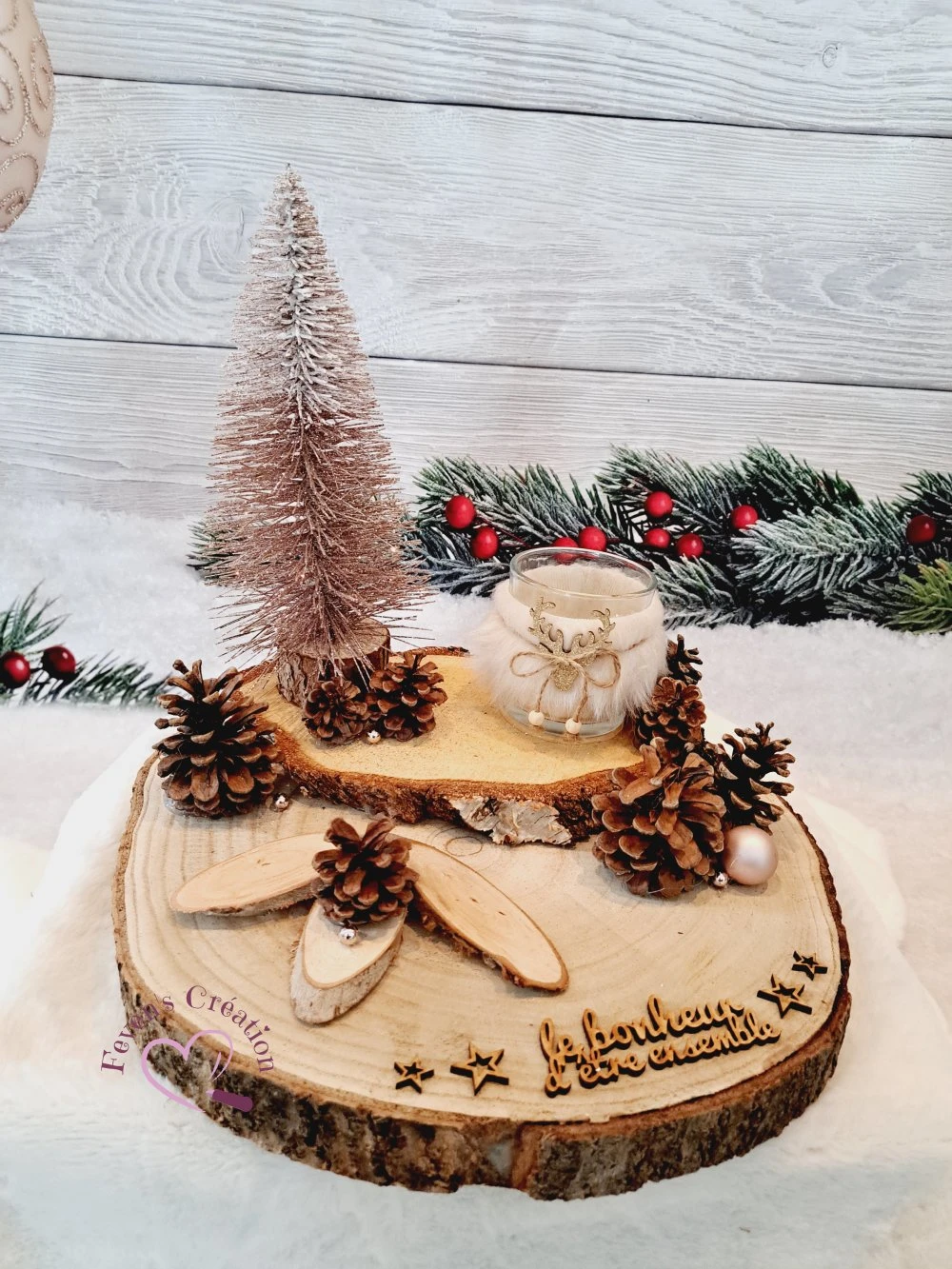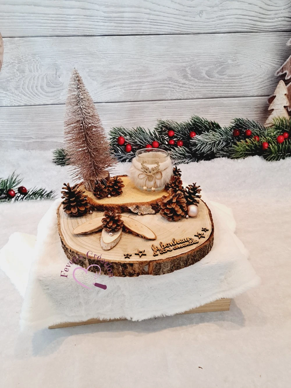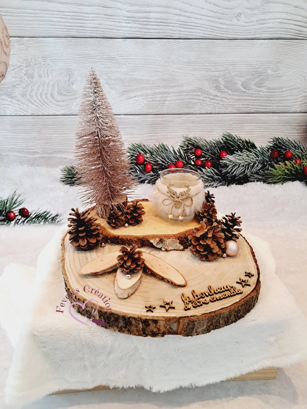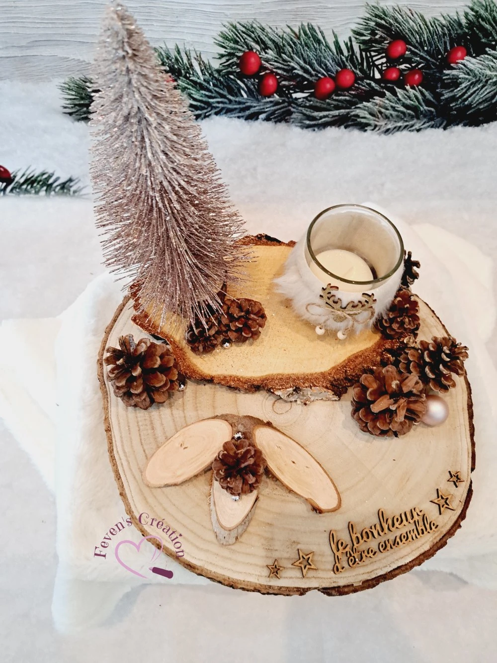 Grand Centre de table en bois – Noël – Jour de l’an / décoration de table ou autre avec Bougie