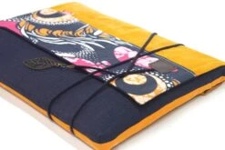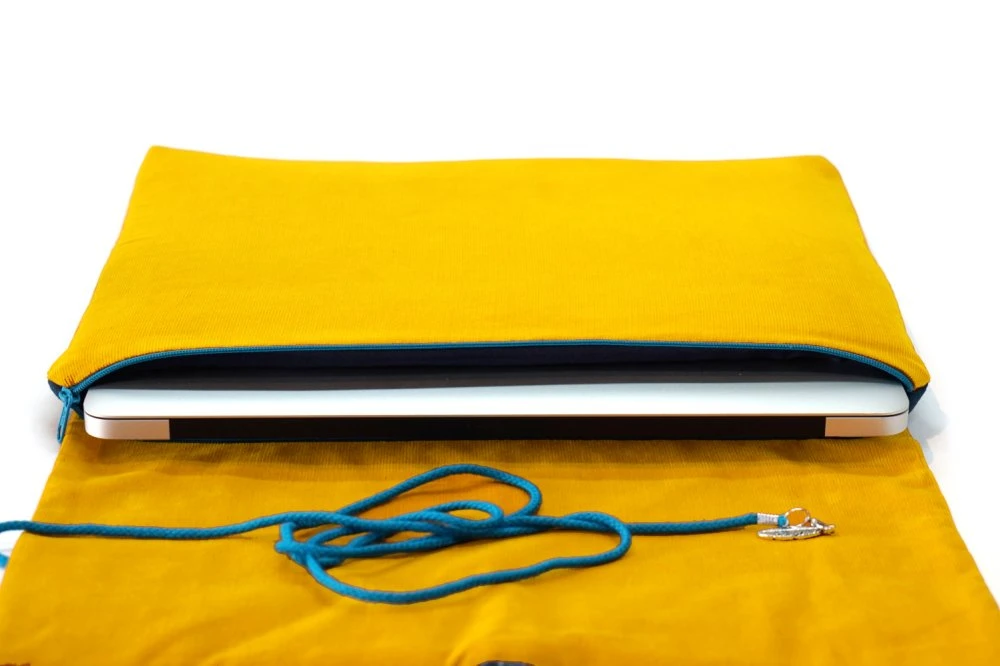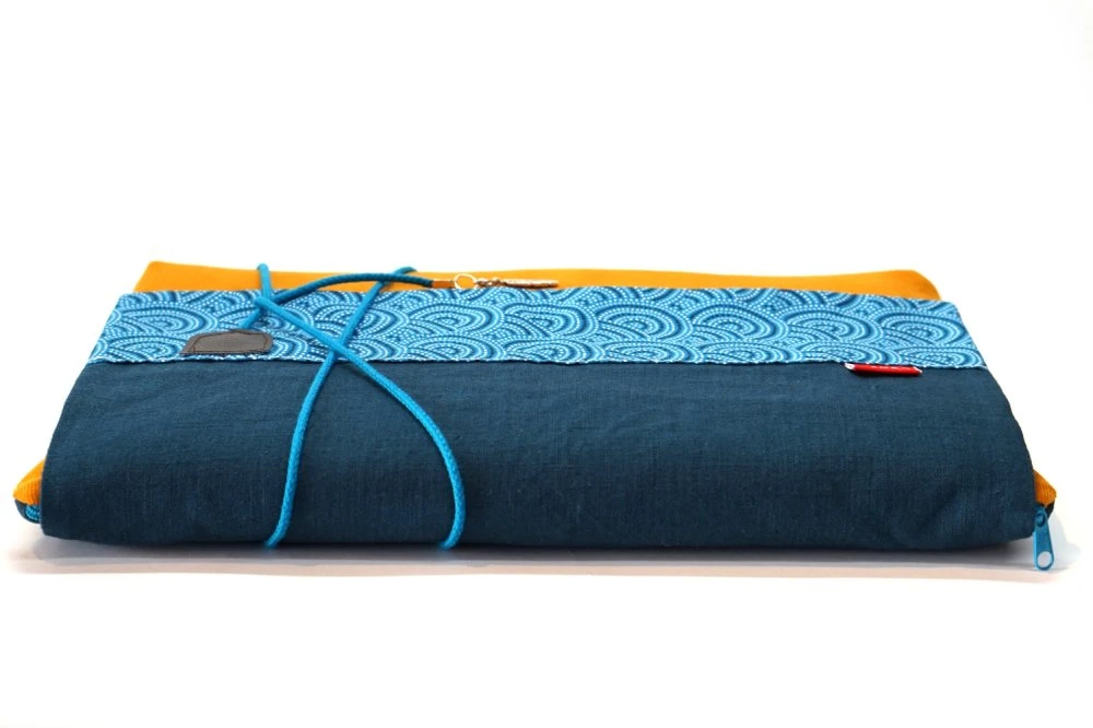 Etui ordinateur portable original en velours/lin avec rabat et fermeture lanière, fait main et SUR MESURE