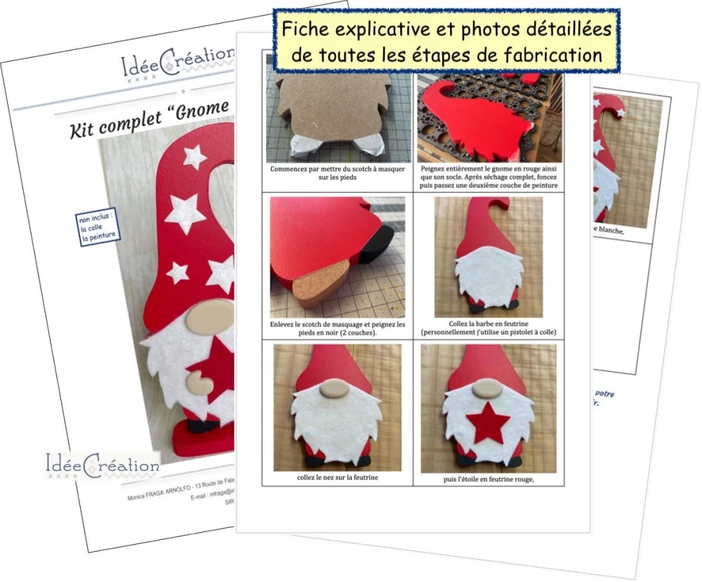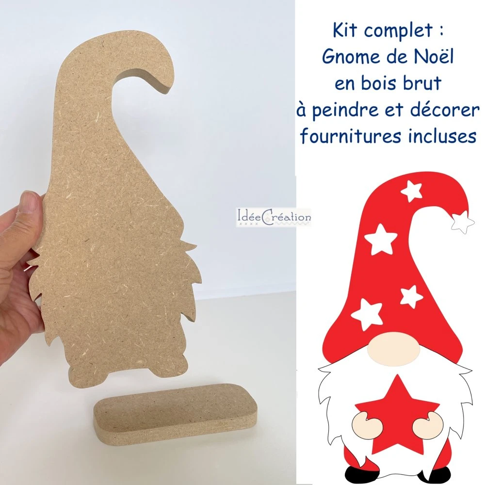 Kit complet « Gnome de Noël » en bois avec fournitures incluses et explications en photos