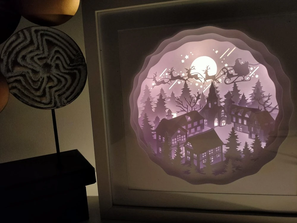 Cadre 3D doté d’une lumière LED à piles ou branchement USB. À utiliser en déco ou veilleuse.