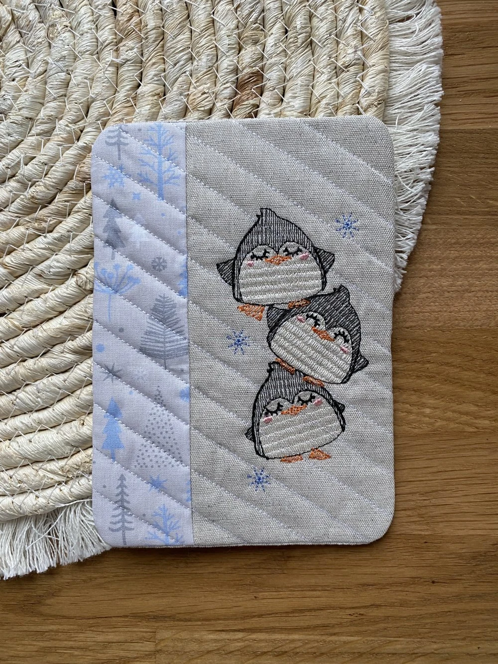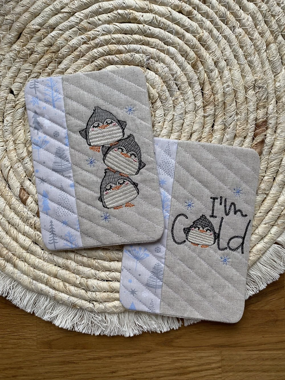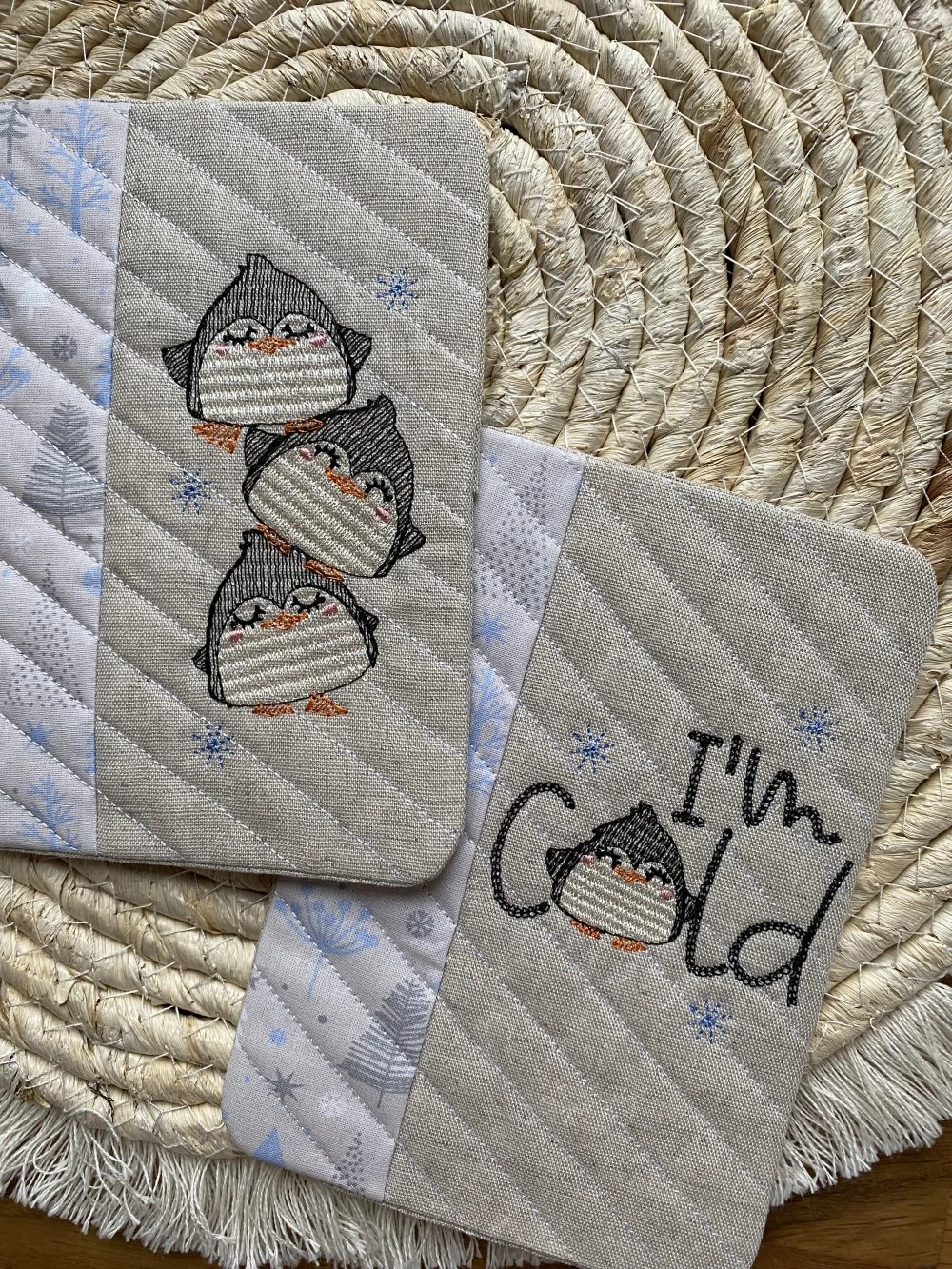 Ils sont tous les 2 brodés avec deux jolis motifs de pingouins.