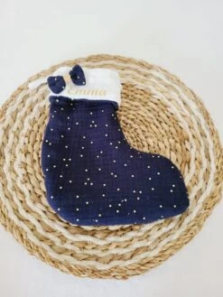Botte De Noël Personnalisée, Chaussette De Noël Personnalisable En Double Gaze à Pois Dorés
