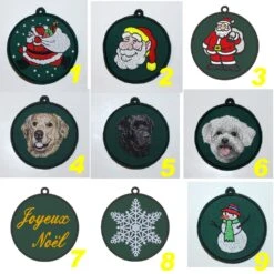 Boule De Noël Bichon Brodée à Suspendre Décoration Ornement Sapin Rétroviseur Broderie