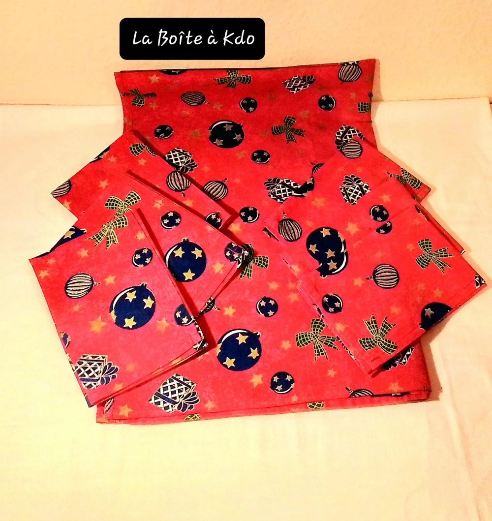 Nappe rectangulaire décor Noël Sur fond rouge marbré