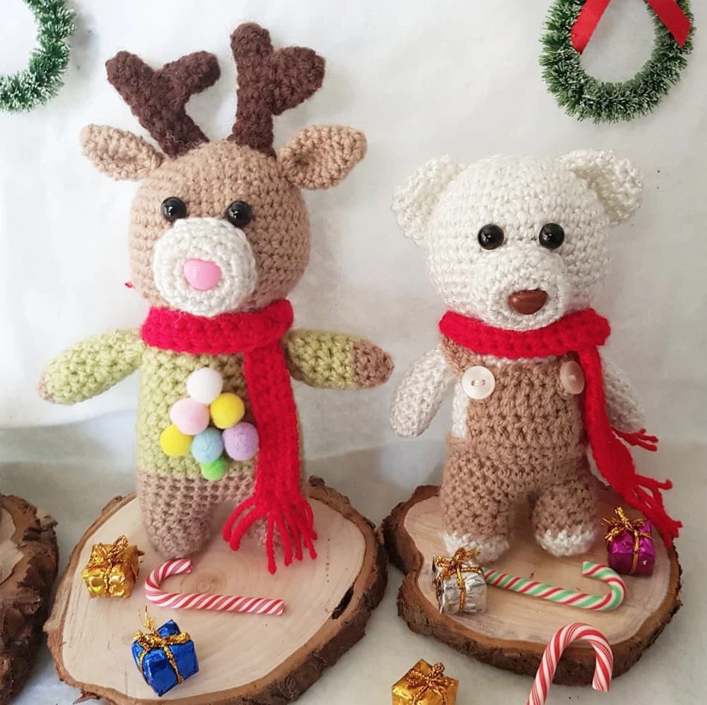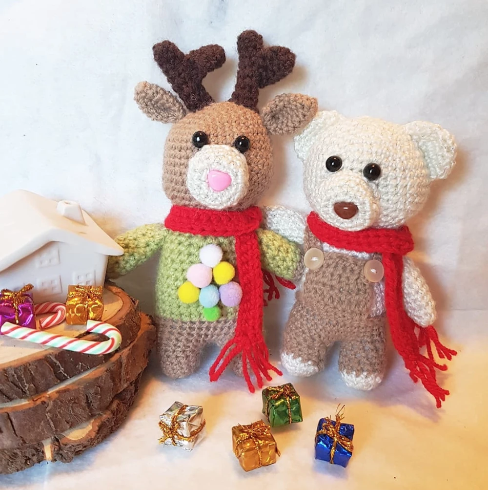 1 Amigurumi peluche de Noël Crochet – renne de noel OU ours blanc polaire – cadeau amusant drôle Lol mignon