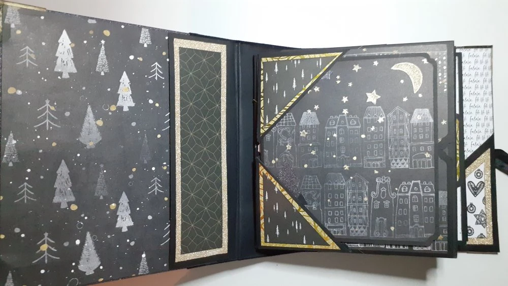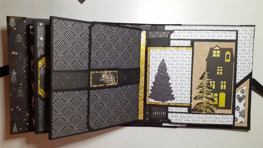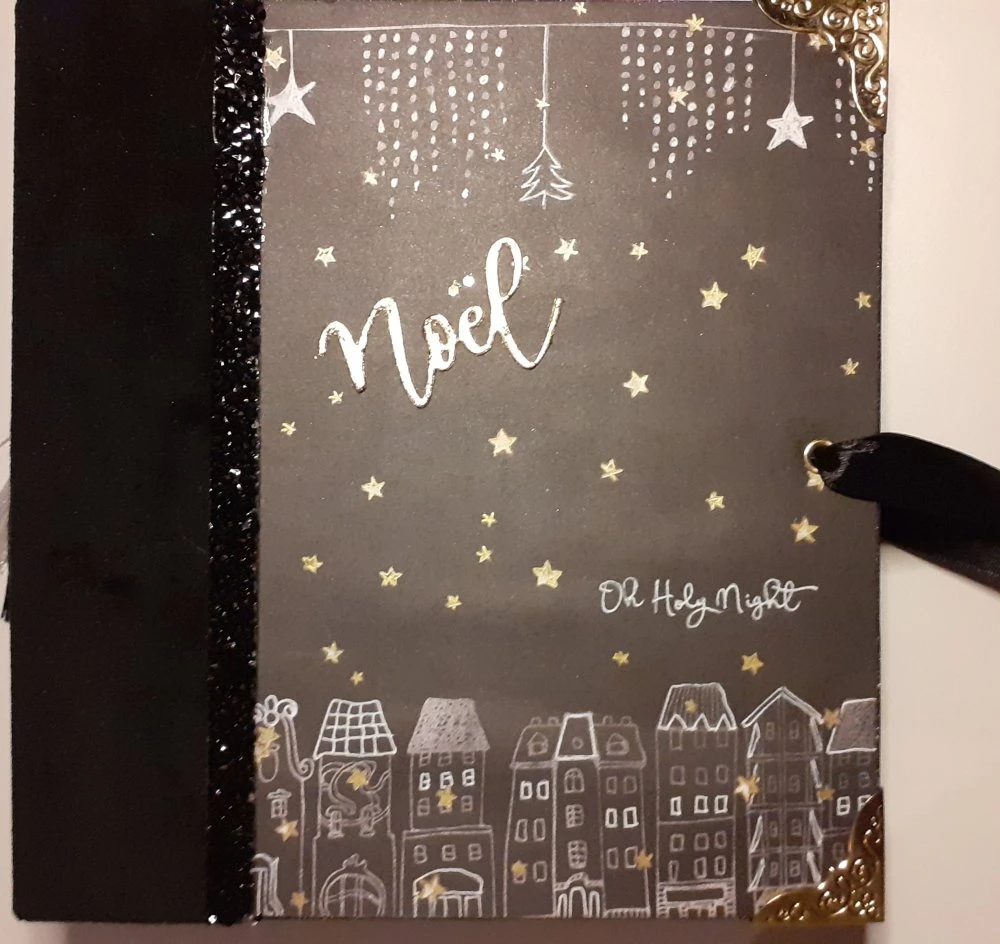 Il est composé de 4 livrets comprenant de nombreuses pages, pochettes, tags et étiquettes. Il est décoré de rubans ainsi que de rubans à strass, d’un bijou d’album et de coins en métal.
