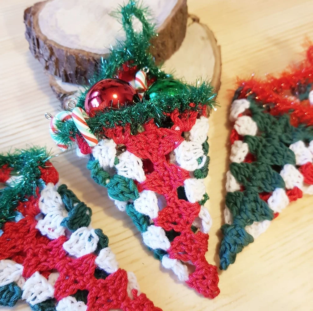 Lot de 3 petites pochettes triangles, cornet à accrocher noël à accrocher dans le sapin de noël ou sur votre cheminée pour bonbons, chocolats, sucres d’orge, petites surprises :