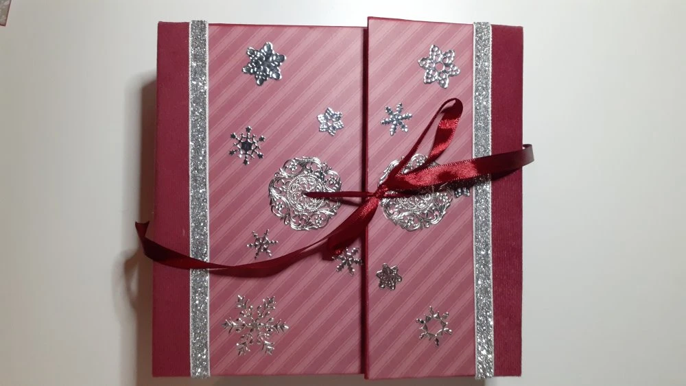 Il est composé de 4 livrets comprenant de nombreuses pages, pochettes, tags et étiquettes. Il est décoré de rubans de satin ainsi que de rubans pailletés et de shipboards métalliques