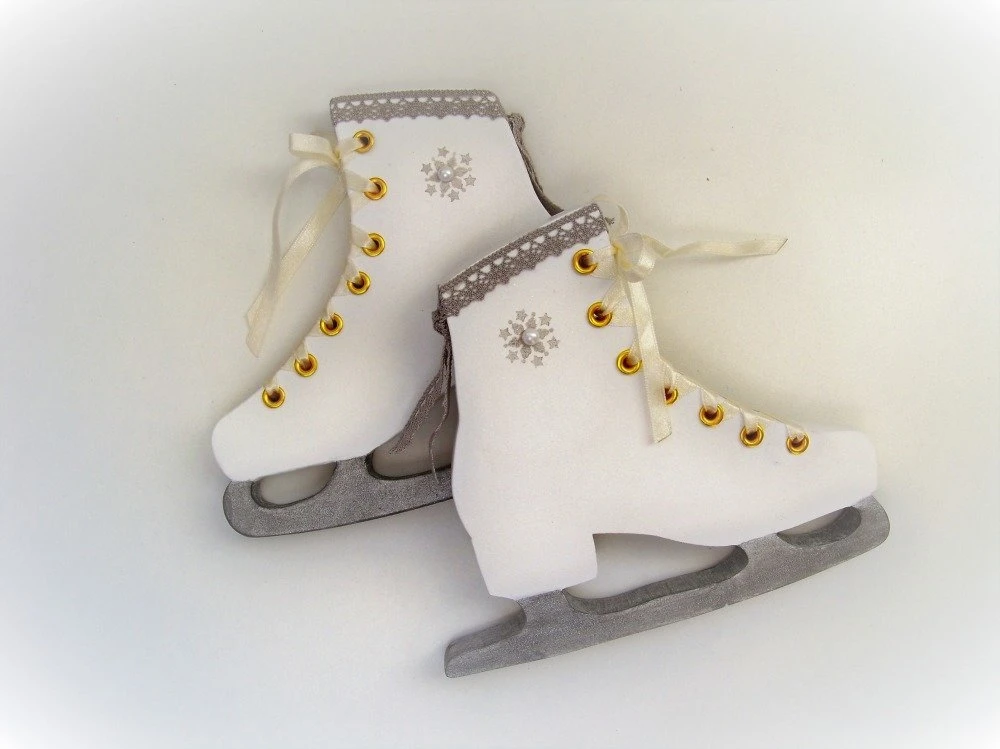 La paire de patin à glace a été chantournée par moi même, puis peinte en blanc pur.