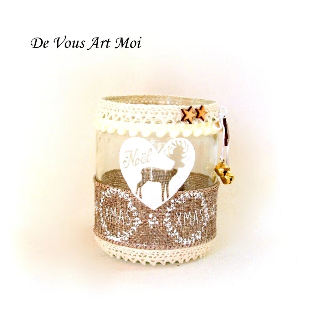 Photophore Noël verre porte bougie noël bougeoir lanterne Noël original verre tissus fait main décoration Noël renne