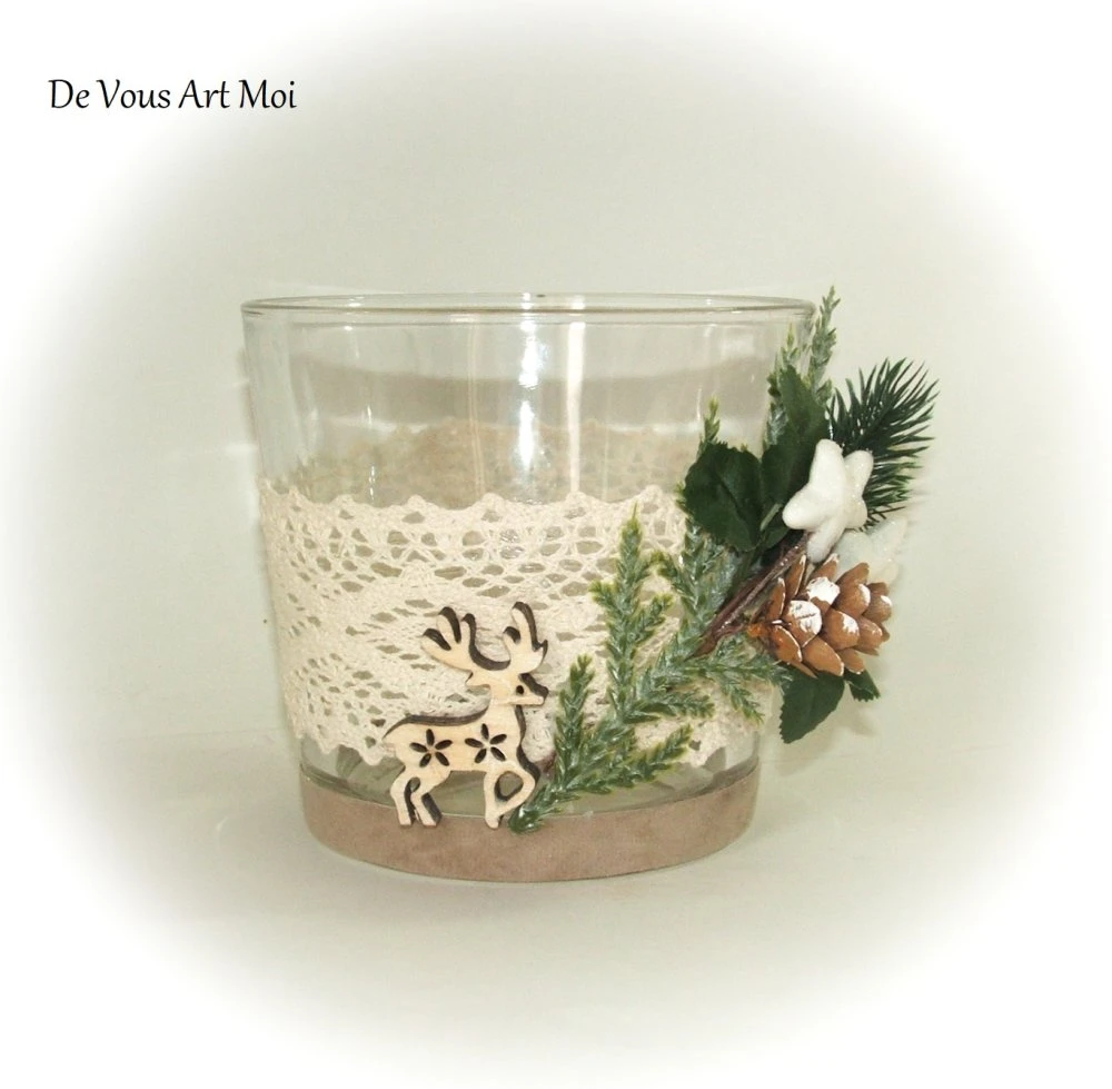 Très joli photophore de Noël pour décorer votre intérieur ou votre table de fête!Chaleur,douceur et magie de Noël seront au rendez vous!