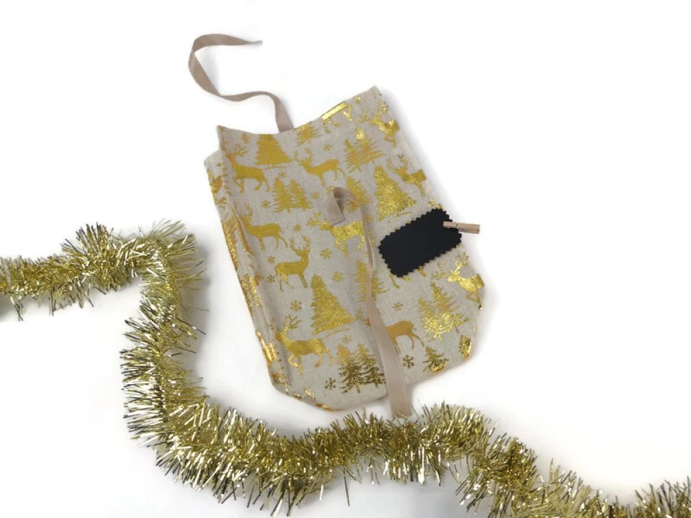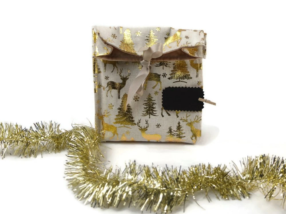 Pour l’environnement, voici 2 petits sacs pour emballer des cadeaux et réutilisable.