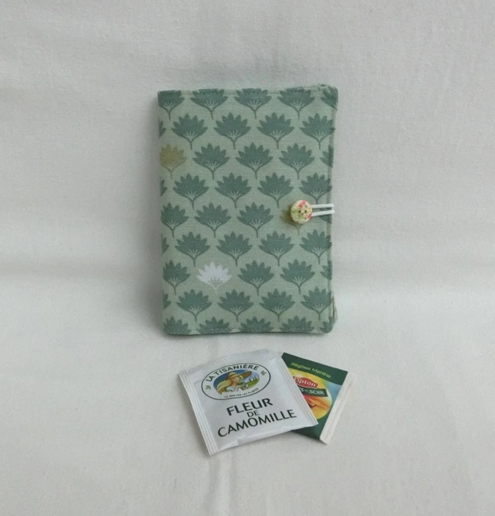 ** 4 poches en Tissu 100% Coton imprimé fleur géométrique – Coloris nuances de Vert