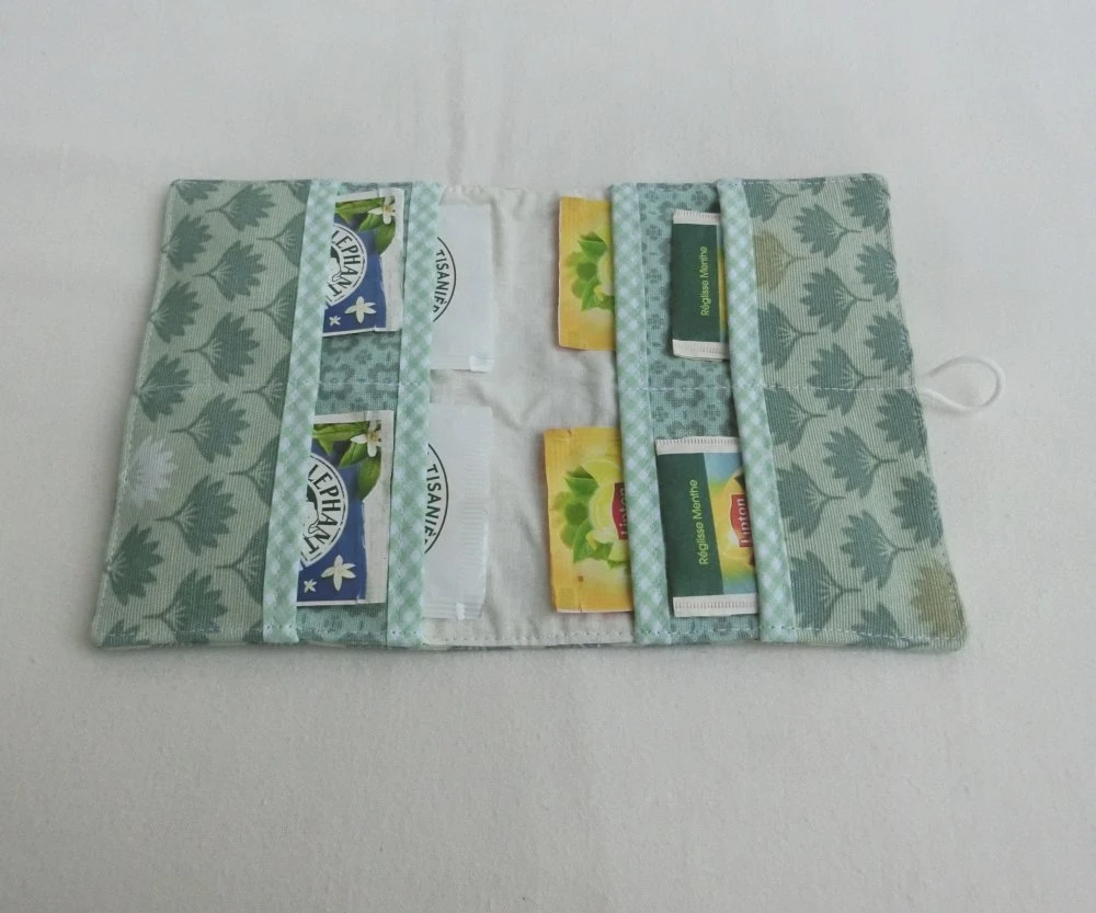 Pochette à compartiments confectionnée par L’ Artisanerie du chas