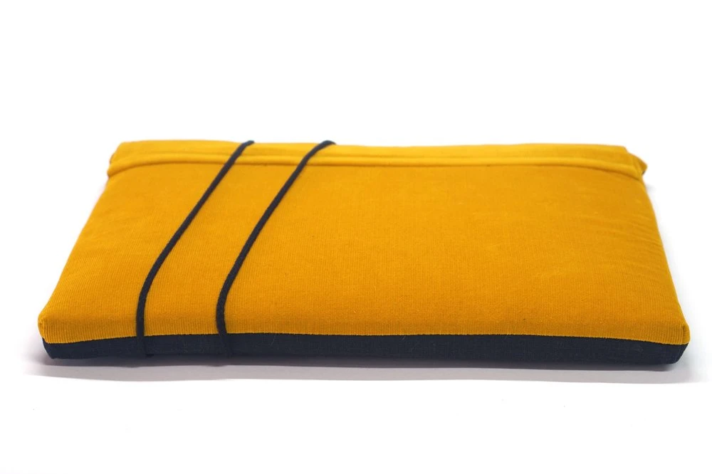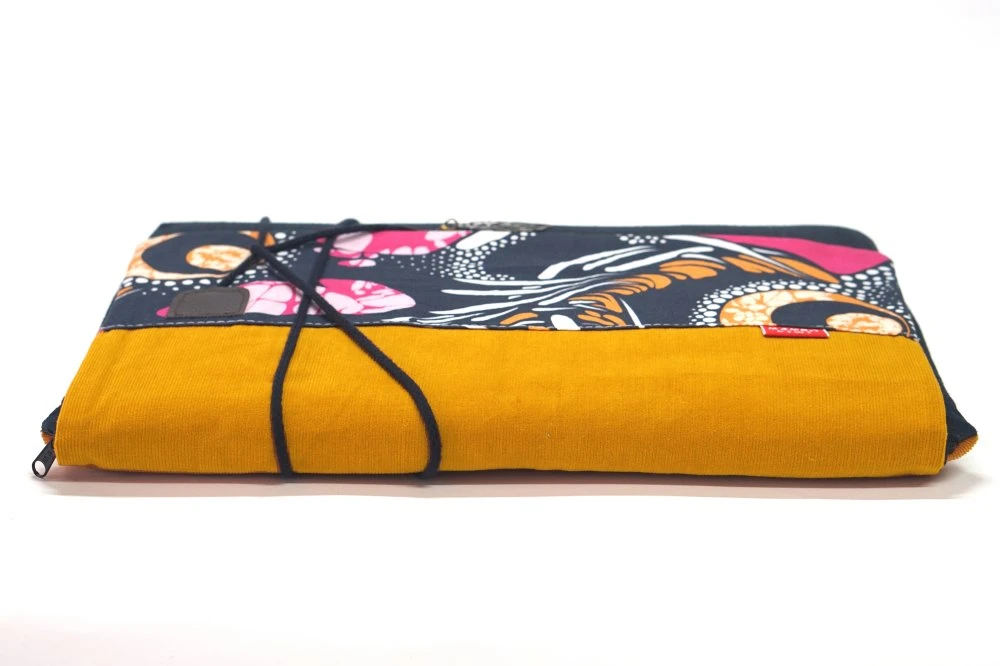Etui ordinateur portable original en velours et lin avec rabat et fermeture lanière, fait main et SUR MESURE