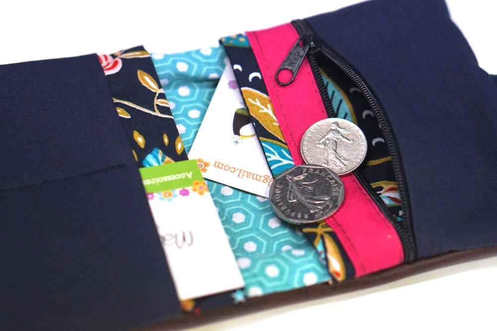 Petit portefeuille fait main, complet, original et très pratique pour les femmes sans chéquier, vous pourrez y mettre tout ce dont vous avez besoin.