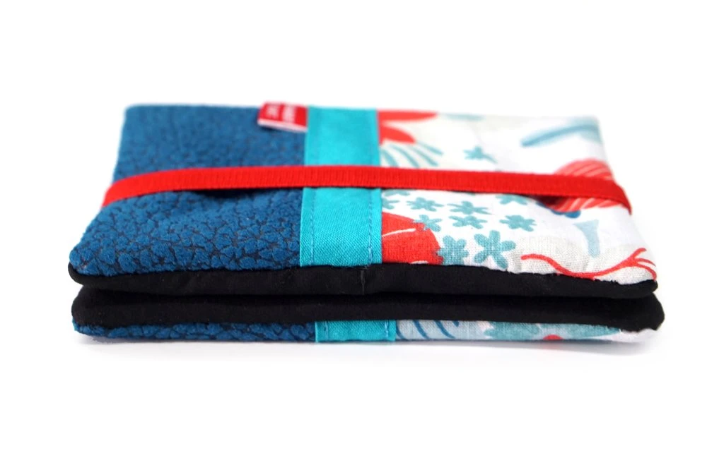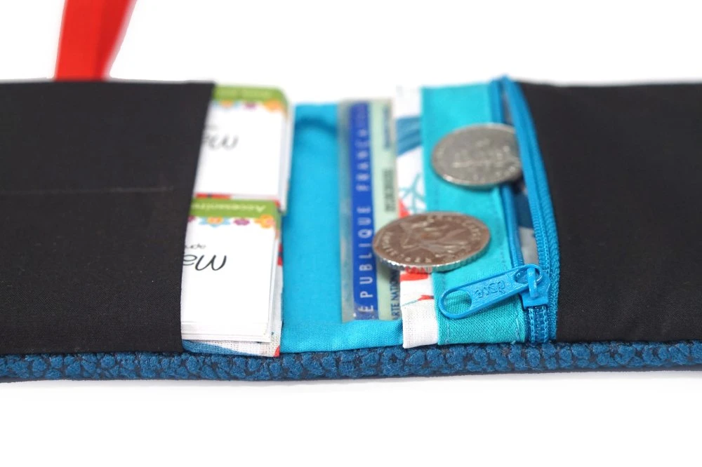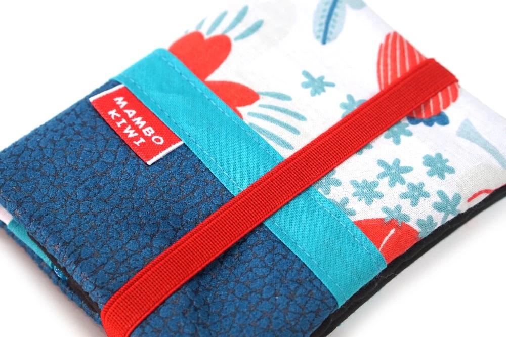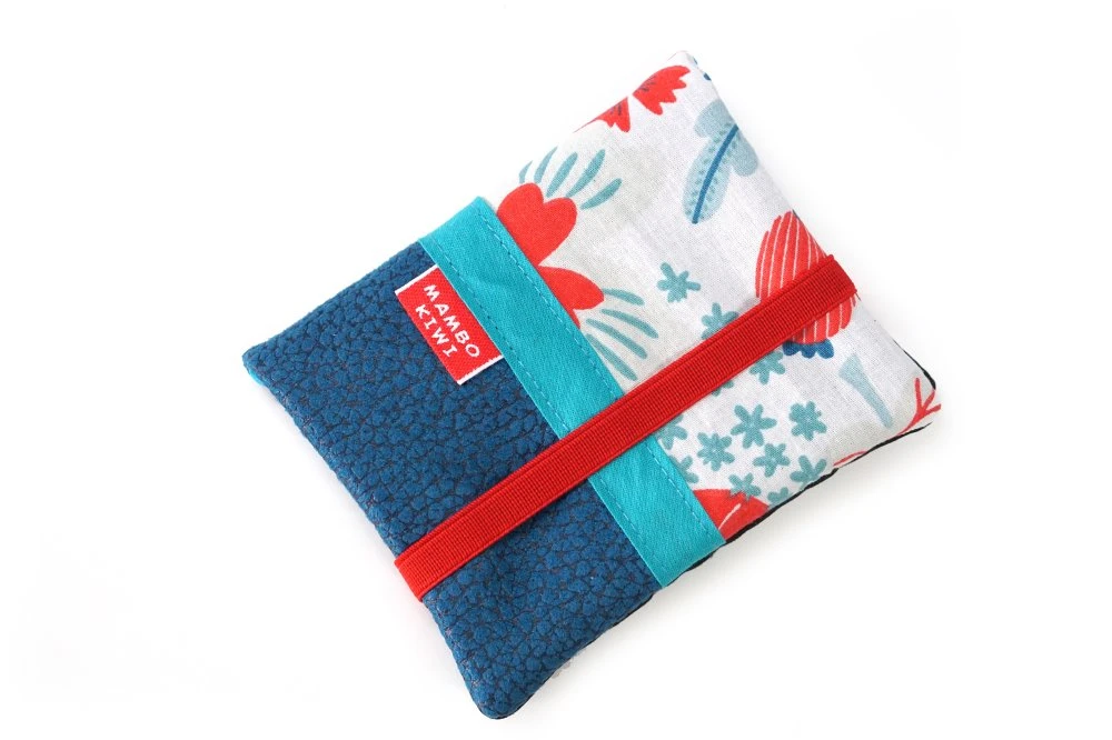 Petit portefeuille porte-cartes et portemonnaie original et coloré en simili cuir turquoise touché velours avec fermeture élastique