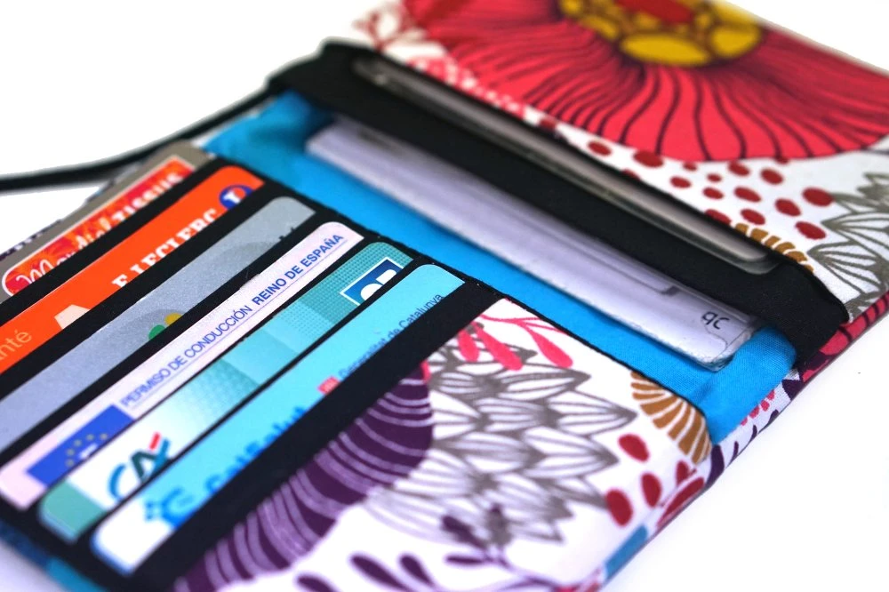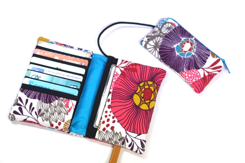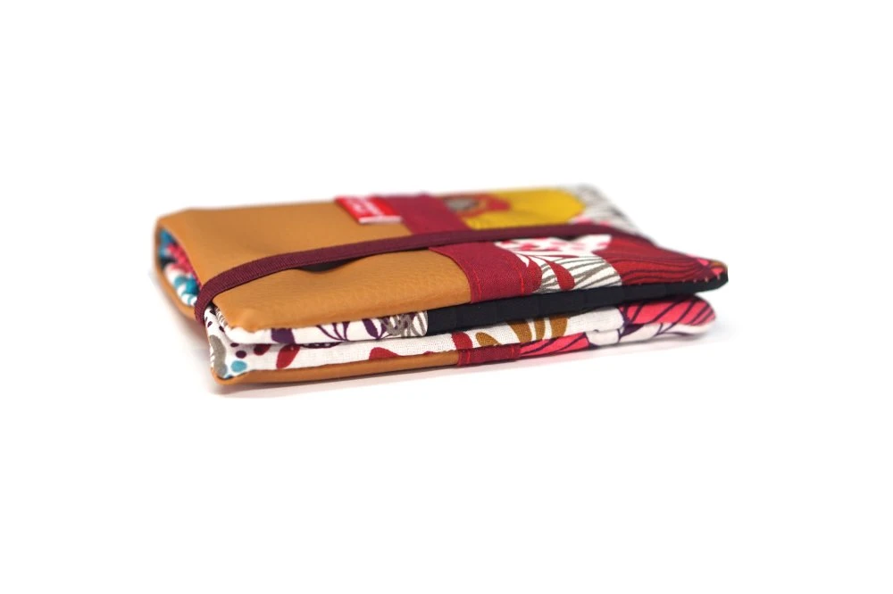 Petit portefeuille porte-cartes et portemonnaie original et coloré en faux cuir avec fermeture élastique, fait main