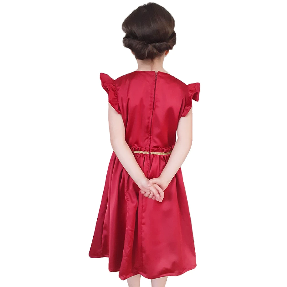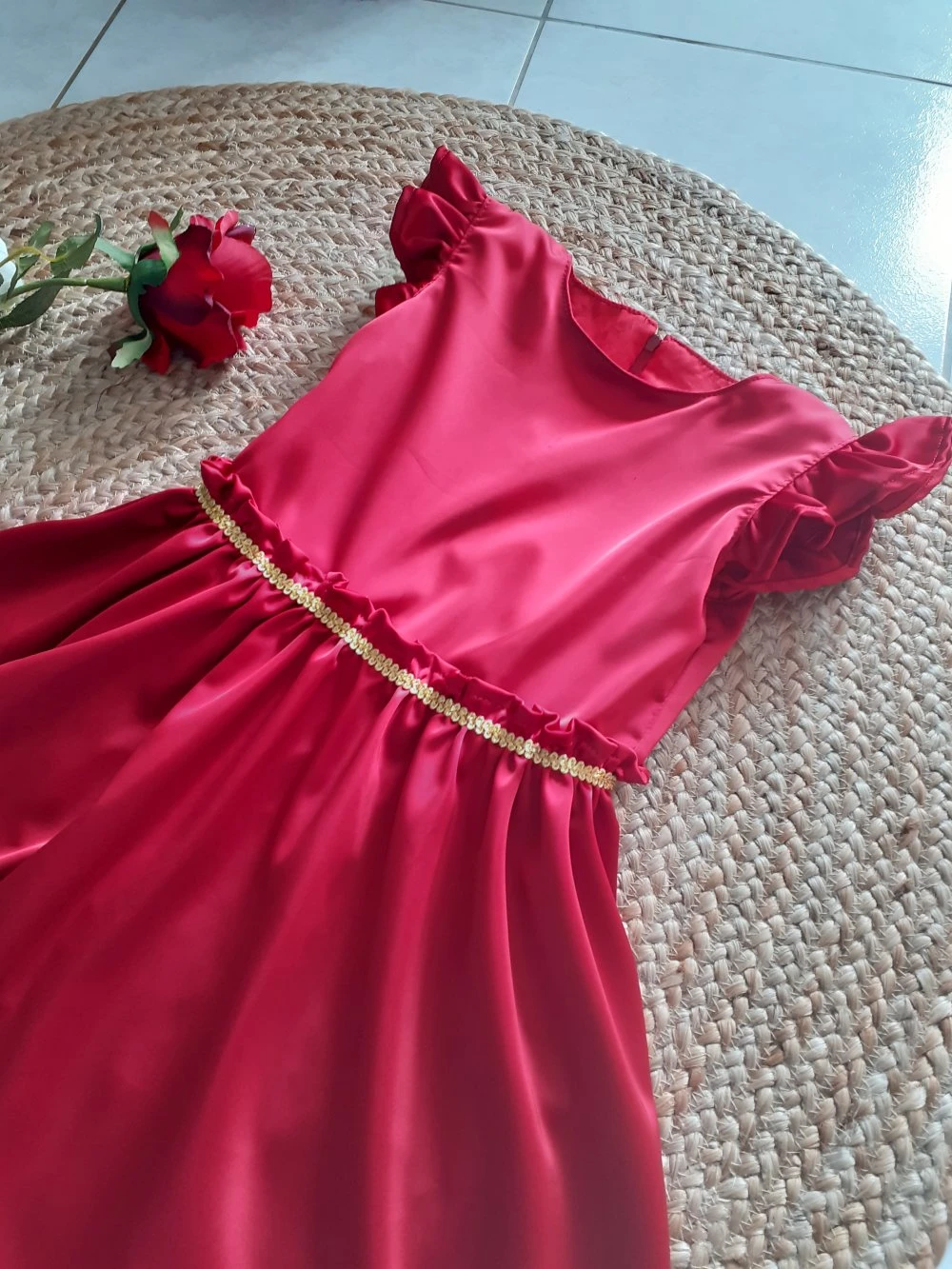Robe petite fille en satin rouge cardinal idéale pour les fêtes de fin d annee comme Noël ou encore pour vos ceremonies comme des mariages baptême etc…