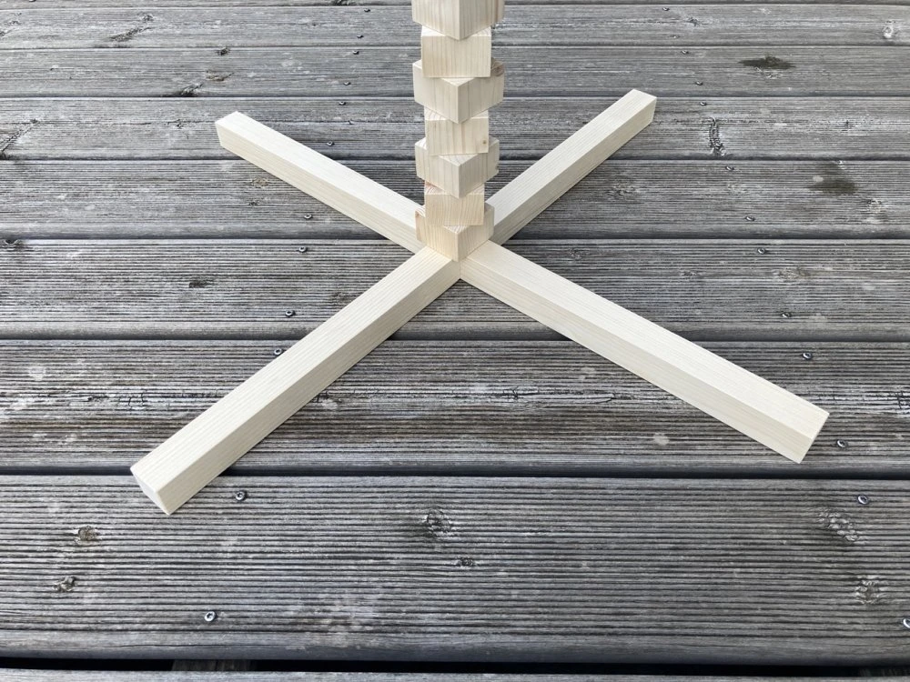 – Assemblage et stabilité renforcés par vissage du socle avec le 6ème cubes et de 4 des branches à l’aide d’inserts pré-montés.