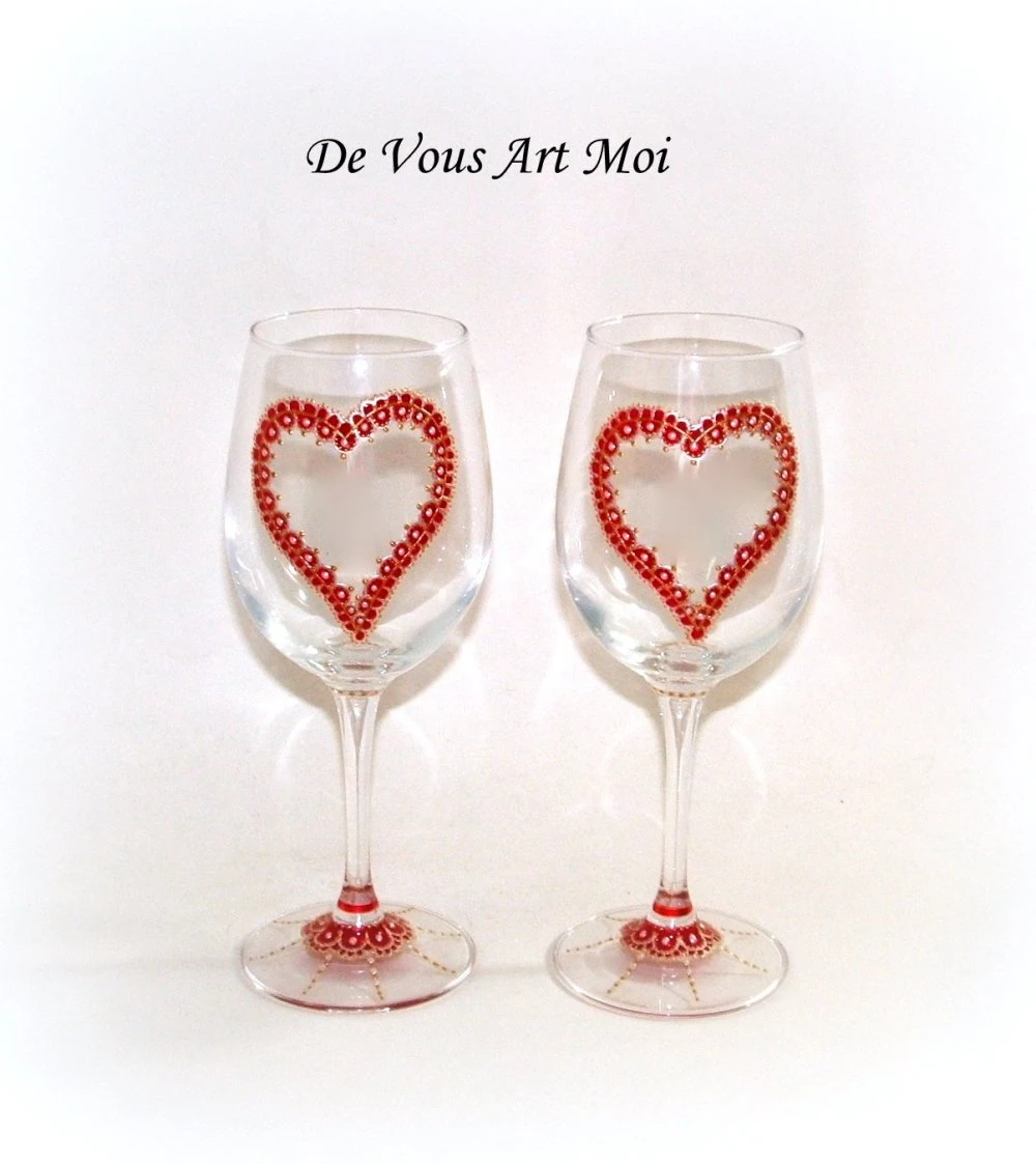 Verre à vin cœur,duo de grands verres à vin,peint à la main,blanc rouge,peinture sur verre,verre artisanal Noël,cadeau verre mariage,verre fait main,cadeau couple,verre de Noël,vaisselle de Noël